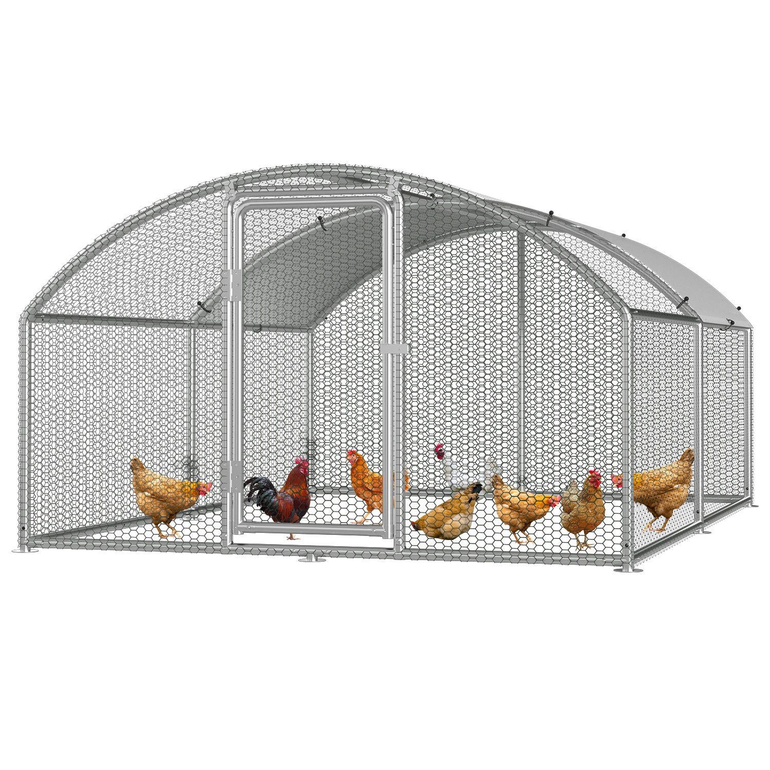 Langlebige Stahlkonstruktion: Hühnerstall Hergestellt aus hochwertigem Stahlrahmen, Abmessungen: 3 x 4 x 2 m (B x T x H), für Geflügel, um freien Raum im Inneren zu haben und einfach zu installieren oder zu demontieren und einfach zu bedienen ist.