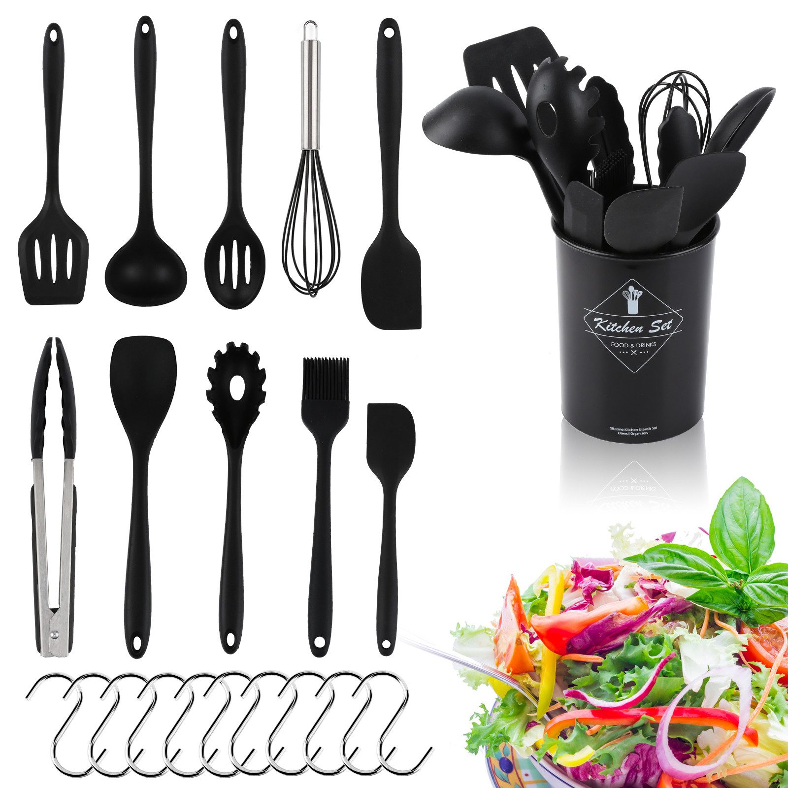 Convenient StorageWir bieten Ihnen 10 Haken und 1 Aufbewahrungseimer, jedes Küchengadget kommt mit Löchern zum Aufhängen und Lufttrocknen, die Ihre Küche sauber und ordentlich halten und Platz sparen können.