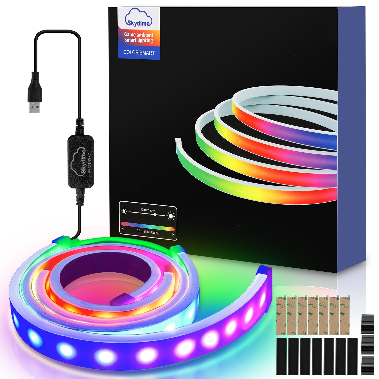 Dieses Neon-LED-Streifen-Kit verfügt über 54-77 fortschrittliche SMD 5050-LEDs. Die verdickte LED-Streifen-Hauptplatine verlängert ihre Lebensdauer. Durch diese Qualität ist die Leuchtkraft sehr stark. Perfekt zum Dekorationsstil eines 24-32-Zoll-PC-Monitor.