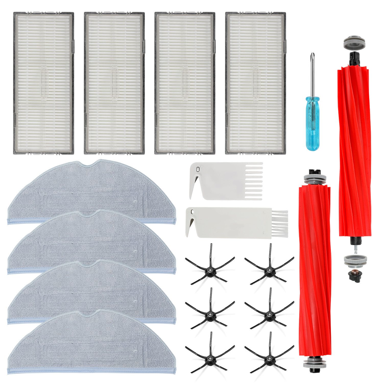 Unser Zubehör ist speziell auf die Roborock S7-Serie abgestimmt. Das Paket enthält 2x orangefarbene Hauptbürste, 4x Wischtücher, 6x schwarze Seitenbürsten, 4 HEPA Filter, 2 verschiedene weiße Bürstenreinigungs Werkzeug und 1x blauen Griff-Schraubendreher. Sie erhalten alles, was Sie für eine gründliche Reinigung benötigen.