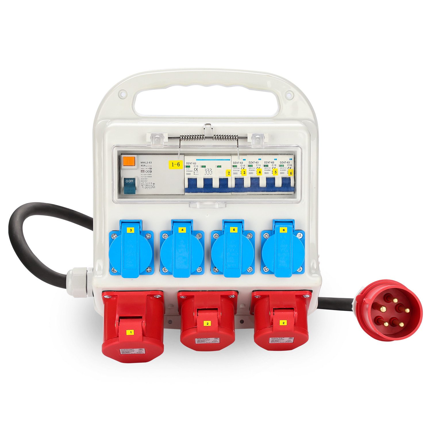 - inkl. 2 x CEE-16/400V Steckdose, 1 x CEE-32/400V sowie 4 x 230V Schukosteckdosen