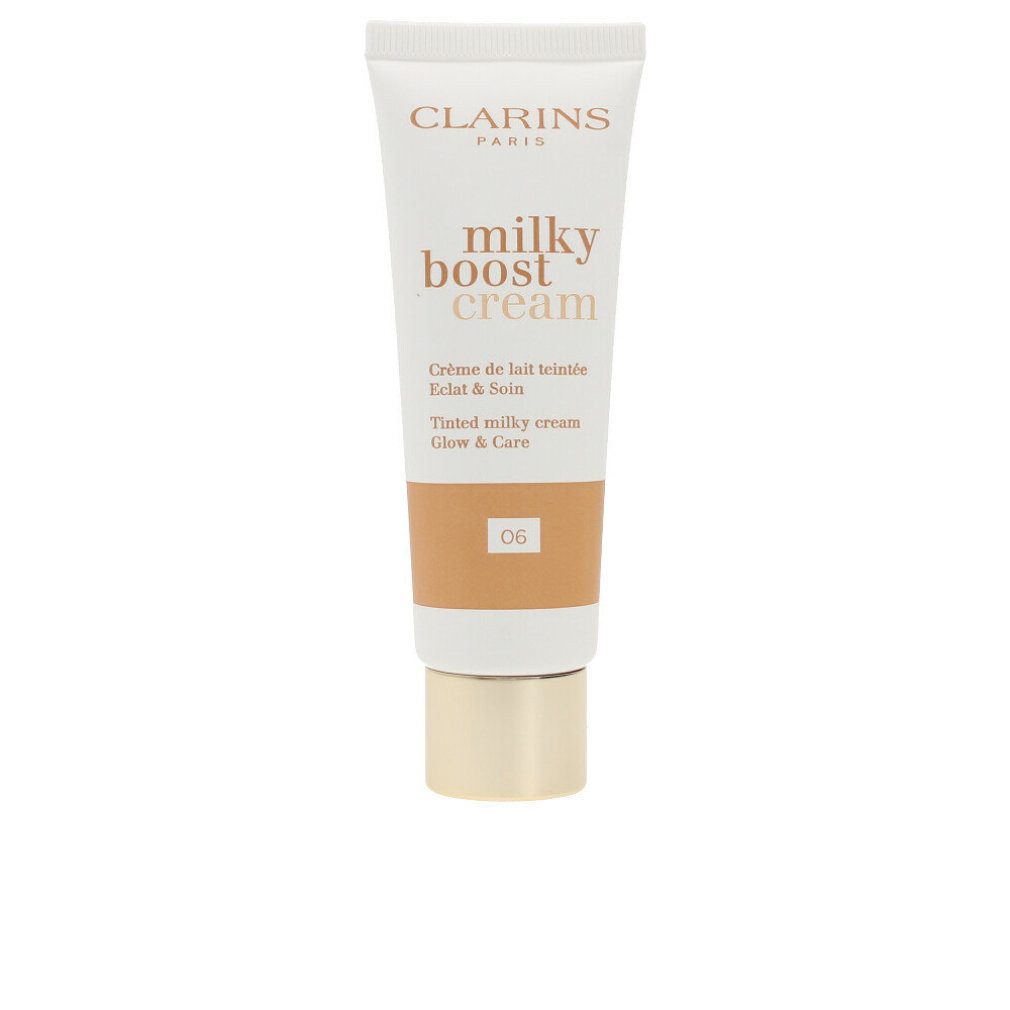 Natürlich schön aussehen dank dieser innovativen getönten Creme mit doppelter Make-up- und Pflegewirkung. Pfirsichmilch mit ihren nährenden und weichmachenden Eigenschaften ist das Herzstück dieser neuen getönten Creme, die der Haut Weichheit und Komfort verleiht. Dank der Milky Boost Cream werden Unebenheiten, Anzeichen von Müdigkeit und feine Linien gemildert. Ihr Teint ist ebenmäßig, strahlend, leuchtend und frisch... ¡Natürlich schöne Haut... ¿Das Geheimnis dieses schönen, samtig-pfirsichfarbenen, leuchtenden Teints?Der [Light Optimizing]-Komplex von Clarins, bestehend aus rosafarbenen Pflegeprodukten und Soft-Focus-Pudern, mildert Unregelmäßigkeiten, Anzeichen von Müdigkeit und feine Linien. Ihr Teint ist ebenmäßig, strahlend, leuchtend und frisch. Unsere Labors haben 5 Wirkstoffe aus 7 Pflanzenextrakten kombiniert: Acerolasamen-Extrakt, der die Haut mit Sauerstoff versorgt und für einen strahlenden Teint sorgt, Pfirsichmilch-Extrakt, der die Haut optimal mit Nährstoffen versorgt, und Huang Qi-Extrakt, der die Haut reinigt.Hinzu kommen ein feuchtigkeitsspendender Komplex aus Hyaluronsäure, Glycerin und Kalanchoe-Extrakt sowie der Anti-Pollution-Komplex von Clarins aus Furcellaria-, Lámpsana- und Horehound-Extrakt, der die schädlichen Auswirkungen der Umweltverschmutzung bekämpft.