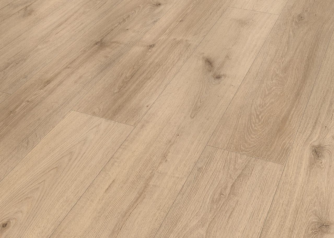 Die Laminatböden von Unlimited Skyline überzeugen mit ihren außergewöhnlichen Dekoren und ihrer Synchronstruktur, durch die sie von Echtholzböden kaum noch zu unterscheiden sind. Die acht verschiedenen Dekore im Vintage-Stil sind spürbar von der Natur inspiriert und eignen sich für anspruchsvolle Wohnräume und Geschäftsräume. Die Laminatdielen haben die Maße 1285 × 192 mm. Unlimited Skyline hat eine Dicke von 8 mm und bietet die Vorteile von einer angenehmen Akustik und weniger Trittschallgeräuschen. Die Laminatböden sind mit dem von CLASSEN entwickelten und patentierten Verlegesystem megaloc aqua protect ausgestattet. Dank diesem lassen sich die Bodenbeläge nicht nur schnell und einfach selbst verlegen, sie bieten dir auch 24 Stunden Schutz vor Nässe und Feuchtigkeit. Dieses einzigartige System verhindert das Eindringen von Wasser in die Fugen und ebenso die Quellung der Kanten. Damit lassen sich die Böden sowohl im Wohn- und Schlafzimmer als auch in Feucht- und Nassräumen wie dem Badezimmer verlegen. Zudem hat die Oberfläche des Unlimited Skyline Laminats eine starke antibakterielle Wirkung und bietet Schutz vor Bakterien nach ISO 22196. Diese Eigenschaften machen das Laminat besonders robust und widerstandsfähig gegen Kratzer, Nässe und Beschädigungen.