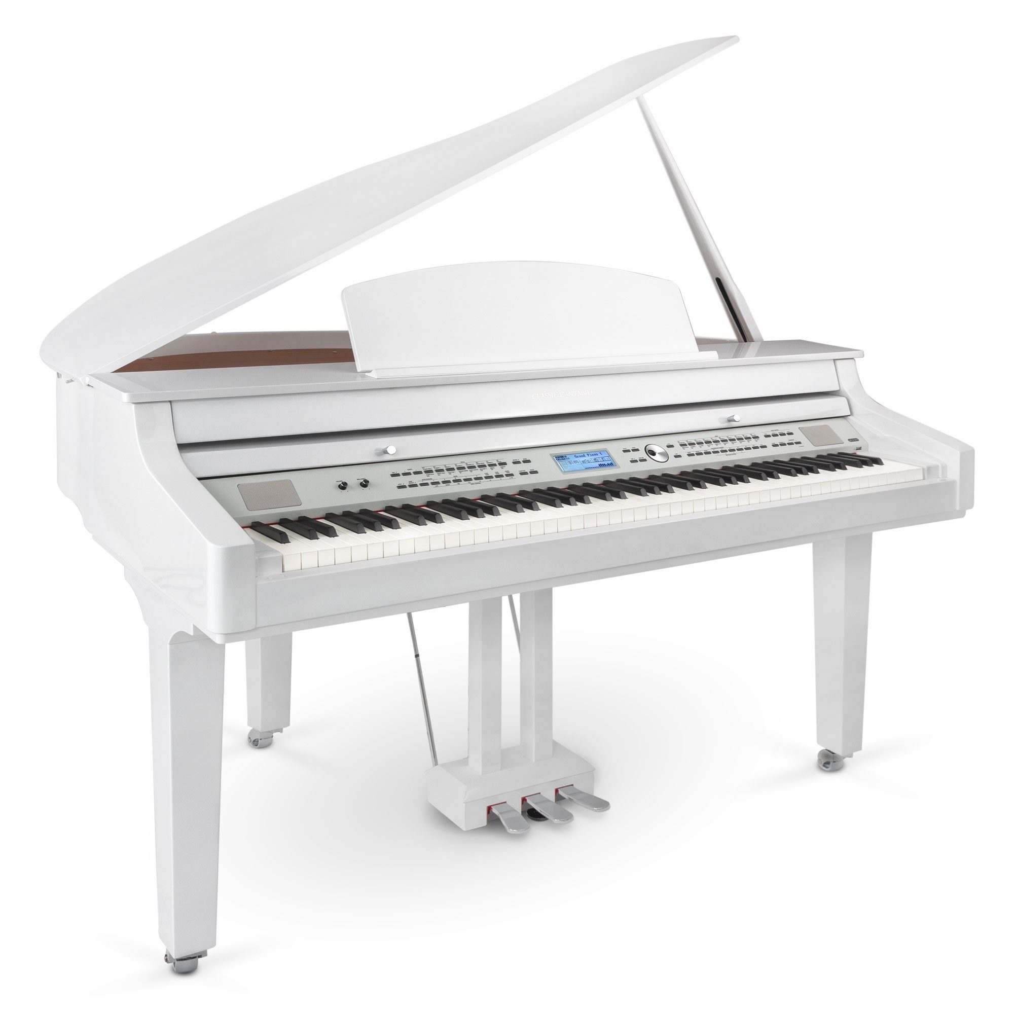 Classic Cantabile bringt mit dem GP-A 810 einen einzigartigen Digitalflügel auf den Markt, welcher Klangqualität und Bespielbarkeit eines akustischen Flügels mit dem erweiterten Funktionsumfang eines Keyboards vereint. Eine hochwertige Tastatur mit Hammermechanik, ein professionelles Stereo-Soundsystem, Bluetooth®-Anbindung sowie 1200 Sounds mit umfangreicher Begleitautomatik sind in dieser Preisklasse Digitalpiano-Revolution!
