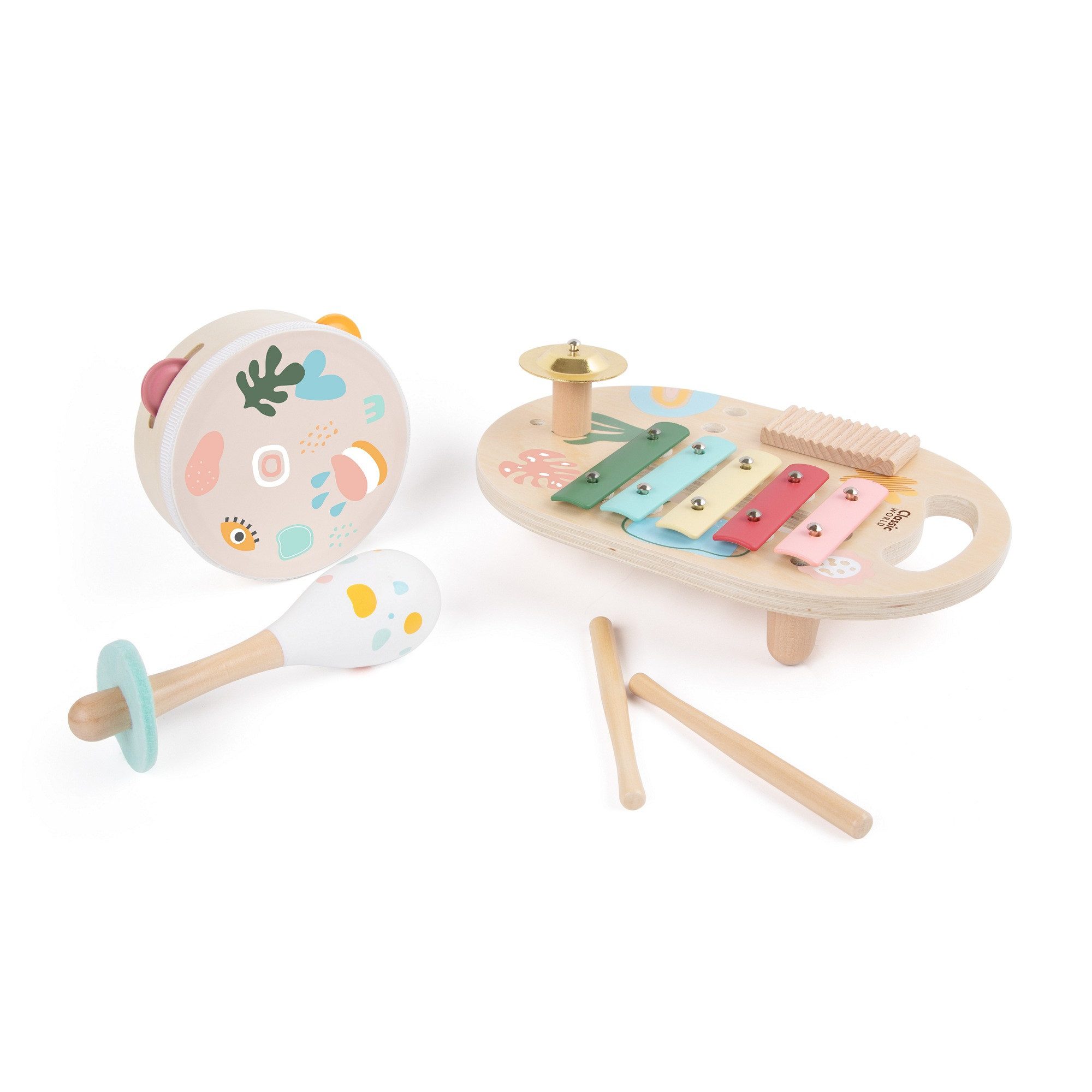 Mit dem liebevoll gestalteten Musikset Iris, bestehend aus Musiktisch, Maracas und Tamburin, können kleine Musiker gemeinsam musizieren und ihrer Kreativität freien Lauf lassen. Ob alleine oder mit Freunden – dieses Set lädt dazu ein, erste Konzerte zu geben und spielerisch Rhythmusgefühl sowie musikalisches Interesse zu fördern.