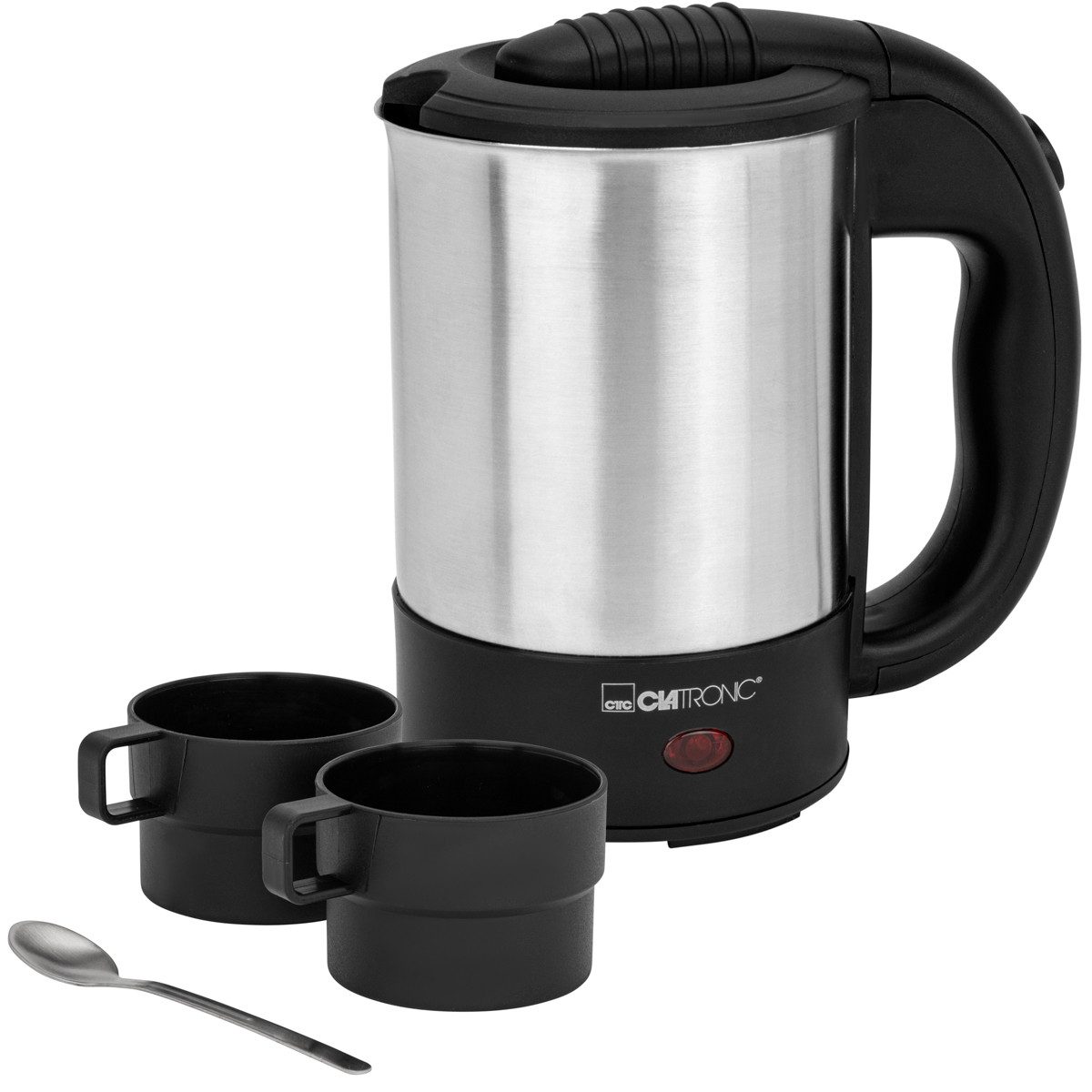 Entdecken Sie mit dem Clatronic® Reise-Wasserkocher WKR 3624 die Freude des Reisens und Unterwegsseins in vollen Zügen! Dieser kompakte Wasserkocher ist Ihr idealer Begleiter für unterwegs und bietet eine Füllmenge von bis zu 0,5 Litern. Das Edelstahlgehäuse verleiht ihm nicht nur Stil, sondern auch Langlebigkeit. Zusätzlich erhalten Sie 2 Tassen à 170 ml, einen Transport- und Reisebeutel sowie einen Kaffeelöffel.
