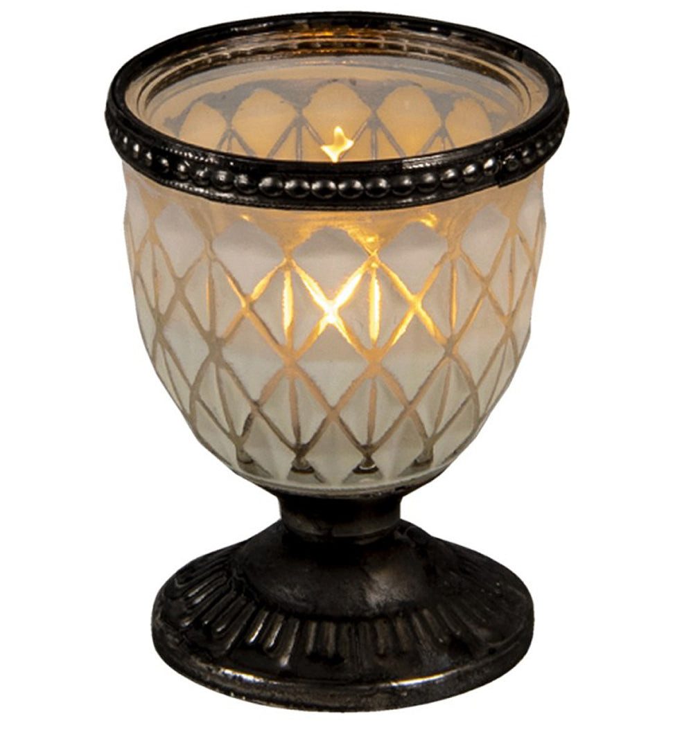 Verleihen Sie Ihrem Wohnraum einen Hauch von Eleganz mit diesem stilvollen Teelichthalter aus Glas.