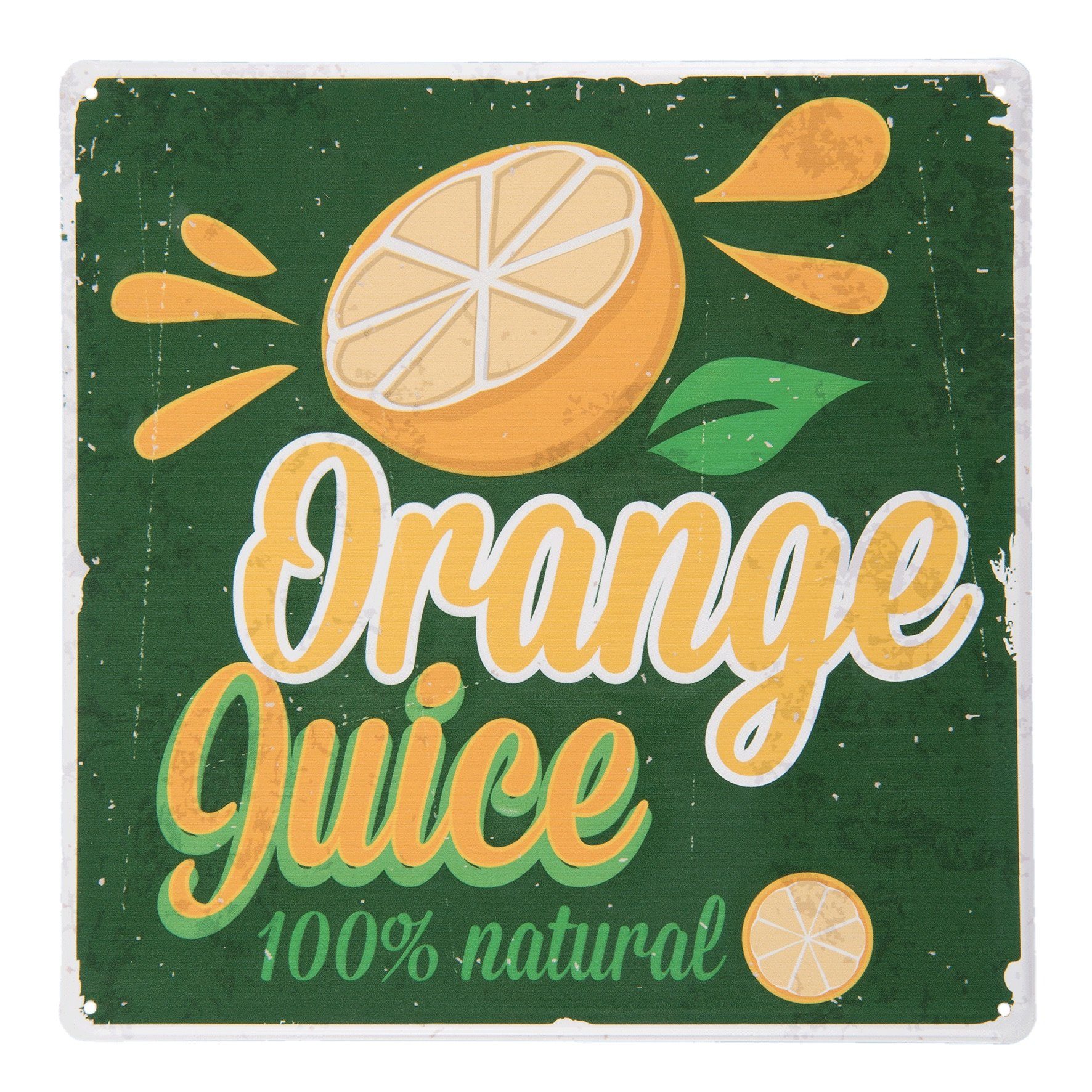 - Grosses Blechschild Dekoschild, top angesagt, im Retro - Vintage Stil Modell: ORANGE JUICE, ALWAYS FRESH. Farbe MEHRFARBIG