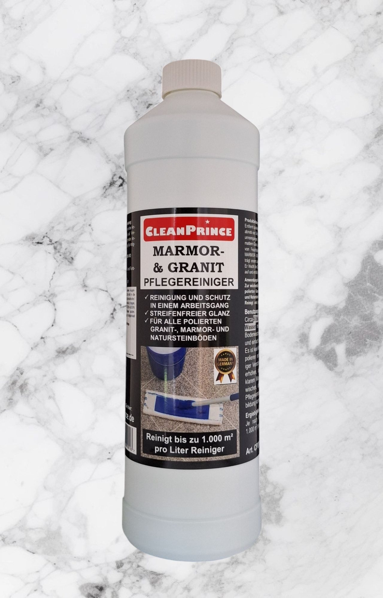 Zubereitungs- und Aufbewahrungshinweise | Zur wöchentlichen Unterhaltsreinigung aller polierten Granit-, Marmor-, Feinsteinzeug- und Natursteinböden. Reinigt und pflegt in einem Arbeitsgang. Circa 50-100 ml in 8 Liter kaltes Wasser mischen und mit einem Bodenwischer nur nebelfeucht wischen und einfach trocknen lassen. Es ist kein Nachwischen oder Nachpolieren notwendig. Bei hartnäckiger Verschmutzung Dosierung erhöhen, aber anschließend mit klarem Wasser nebelfeucht nachwischen, da es sonst durch die Pflegekomponenten zur Schlierenbildung kommen kann. |