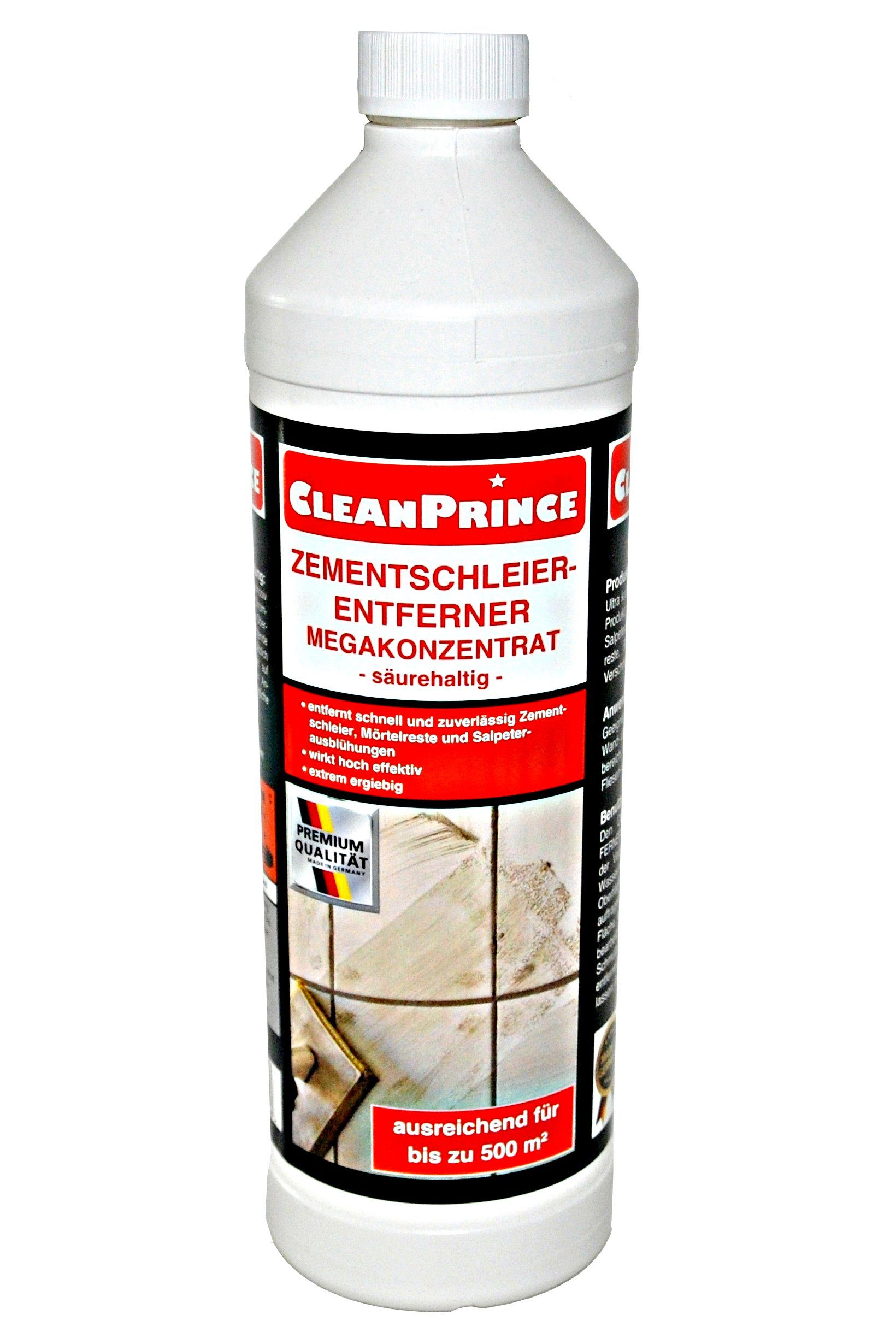 Zubereitungs- und Aufbewahrungshinweise | CleanPrince Zementschleier-Entferner Mega-Konzentrat je nach Grad der Verschmutzung 1:5 bis 1:50 in kaltem Wasser verdünnen und auf die zu reinigende Oberfläche mit Schrubber oder Bürste auftragen. Nach 3-5 Minuten Einwirkzeit die Fläche erneut mit dem Schrubber bearbeiten und dann die gelösten Schmutzpartikel mit reichlich klarem Wasser entfernen. Das Produkt nicht antrocknen lassen, daher abschnittsweise reinigen. |