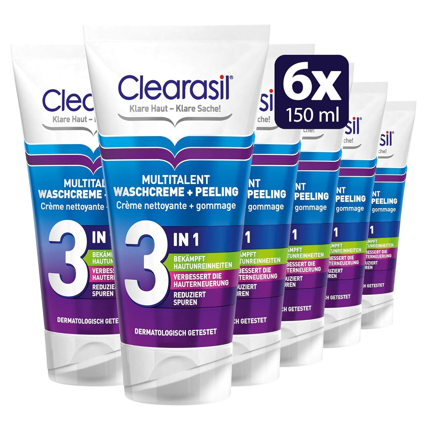 Clearasil 3in1 kombiniert Waschcreme und Gesichtswasser. Somit ist es der ideale Begleiter für alle, die bei der täglichen Gesichtspflege-Routine gerne Zeit sparen. Clearasil Multitalent Waschcreme + Peeling 3in1 wirkt gleich dreifach gegen unreine Haut: Es bekämpft Hautunreinheiten wie Pickel und Mitesser, verbessert die Hauterneuerung und reduziert Mitesser. Das Peeling ist für die tägliche Reinigung im Gesicht geeignet, befreit verstopfte Poren und sorgt für sichtbar reinere Haut.