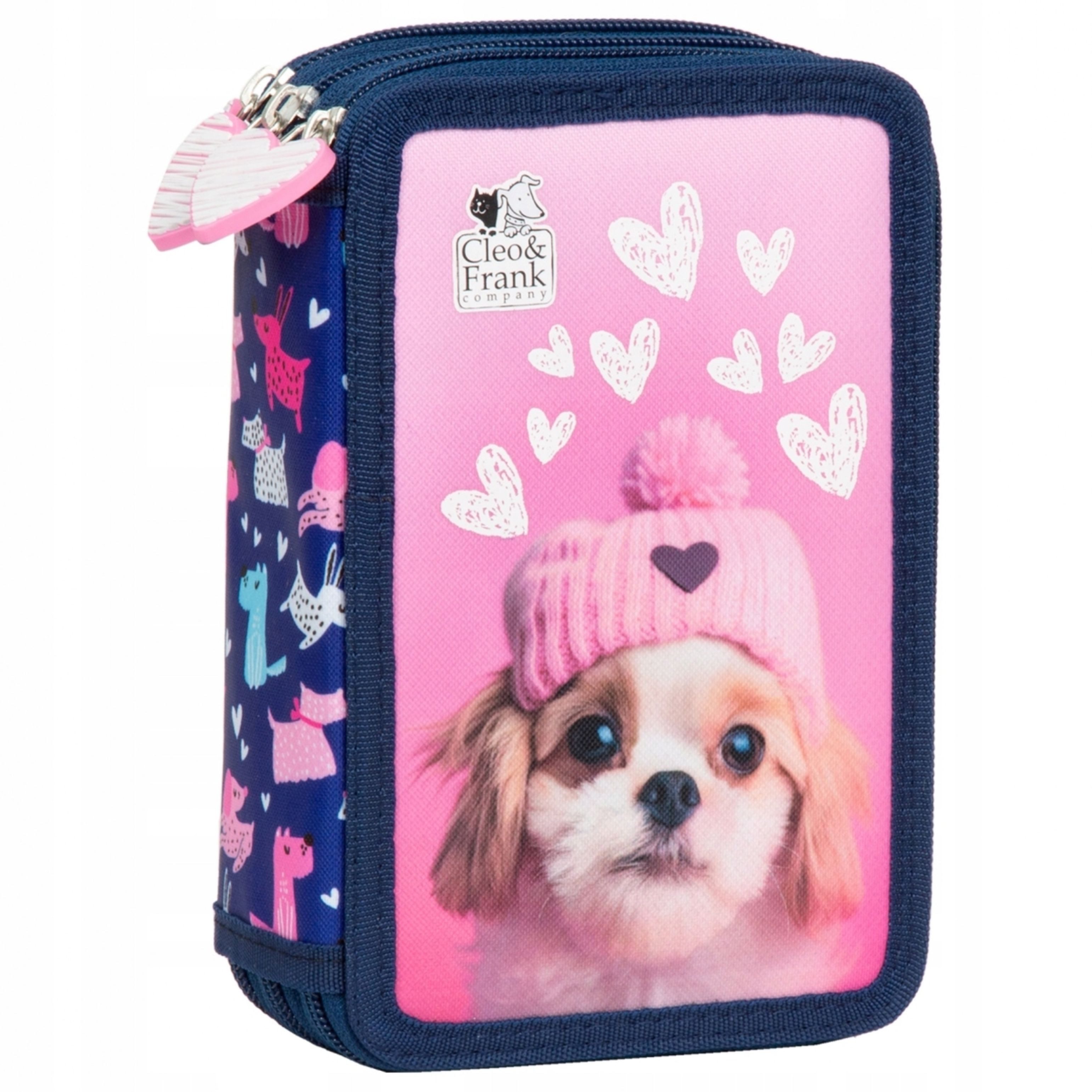 Entzückendes 3-Fach Federmäppchen mit Hunde-Motiv von CLEO & FRANK – ideal für kleine Hundefans! Dieses hochwertig verarbeitete Etui ist bereits vollständig ausgestattet und perfekt für Schule, Freizeit und kreatives Malen. Ein Must-have für junge Schülerinnen – praktisch, robust und liebevoll gestaltet. Maße: 20 x 13 x 7 cm