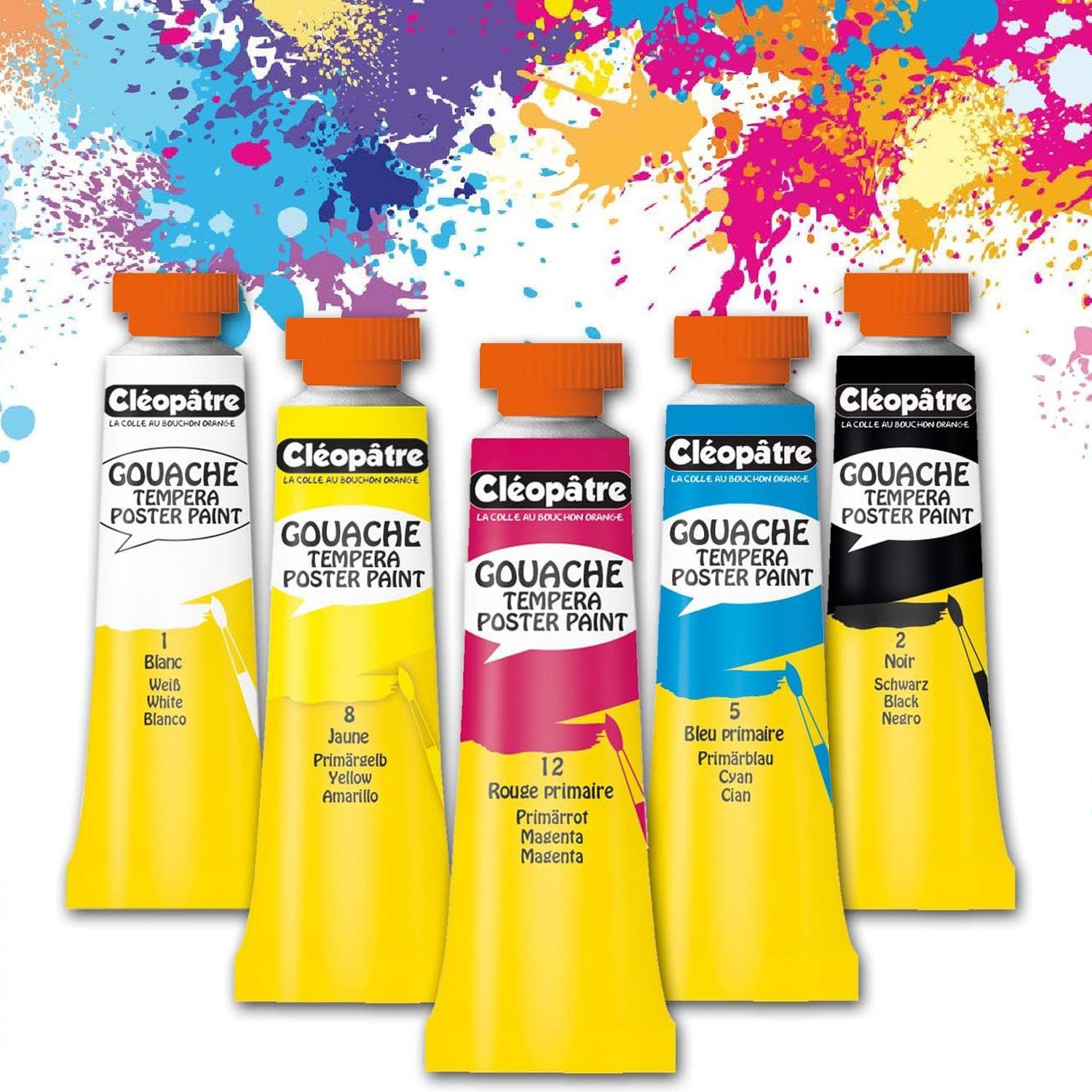 CLEOPATRA Aquarellfarbe 5 TUBEN GOUACHE IN BLISTERVERPACKUNG, JE 10ml : WEISS, PRIMÄRGELB, MAG