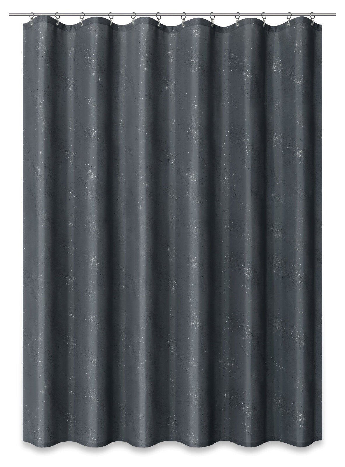 Der Duschvorhang Strass ist aus hochwertigem Textil gefertigt und das wasserabweisende Material sorgt für ein angenehmeres Duscherlebnis. Auf der Oberfläche sind silberfarbene Strass-Steine aufgebracht. Durch die Beschichtung der Oberfläche wird eine schnelle Schimmelbildung unterdrückt. Passt für die meisten Dusch- / Badewannengrößen und funktioniert mit geraden oder gebogenen Duschstangen. Das Öffnen des Duschvorhangs nach dem Duschen verhindert eine schnelle Schimmelbildung. Bitte Duschvorhang Ringe separat bestellen.