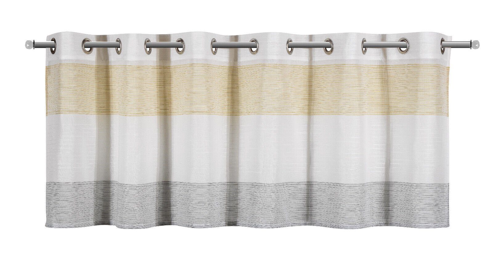 Grundware in Leinenoptik mit eingearbeiteten Webstreifen | Panneau mit 12 Metallösen (Durchmesser 1,7cm) |