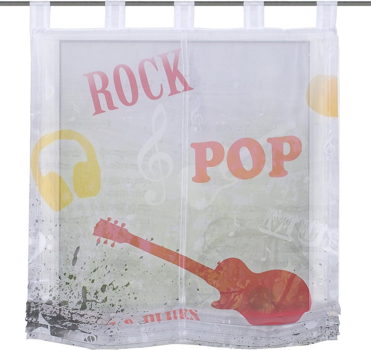 Schickes Raffrollo aus transparenten Voile welches mit dem Digitaldruck "Minot / Musik" fotorealistisch bedruckt wurde. Der Druck wurde durch eine spezielles Druckverfahren digital auf den Stoff gebracht, wodurch der Druck besonders farbintensiv und hoch qualitativ ist. Das Rollo wird mit der beigelegten Flexoschiene und Gleiter - einfach in Ihre Gardinenschiene eingehängt. Durch die besondere Stoppertechnik lässt sich das Rollo zudem in der Höhe stufenlos verstellen. Das Rollo besteht zu 100% aus Polyester..