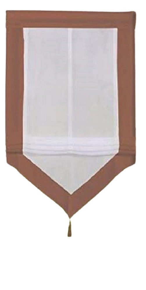 Raffrollo Voile weiß mit Blende braun | BxH 60/80x140cm | mit Dreieckabschluß | Voile (transparent) | Blende: braun |