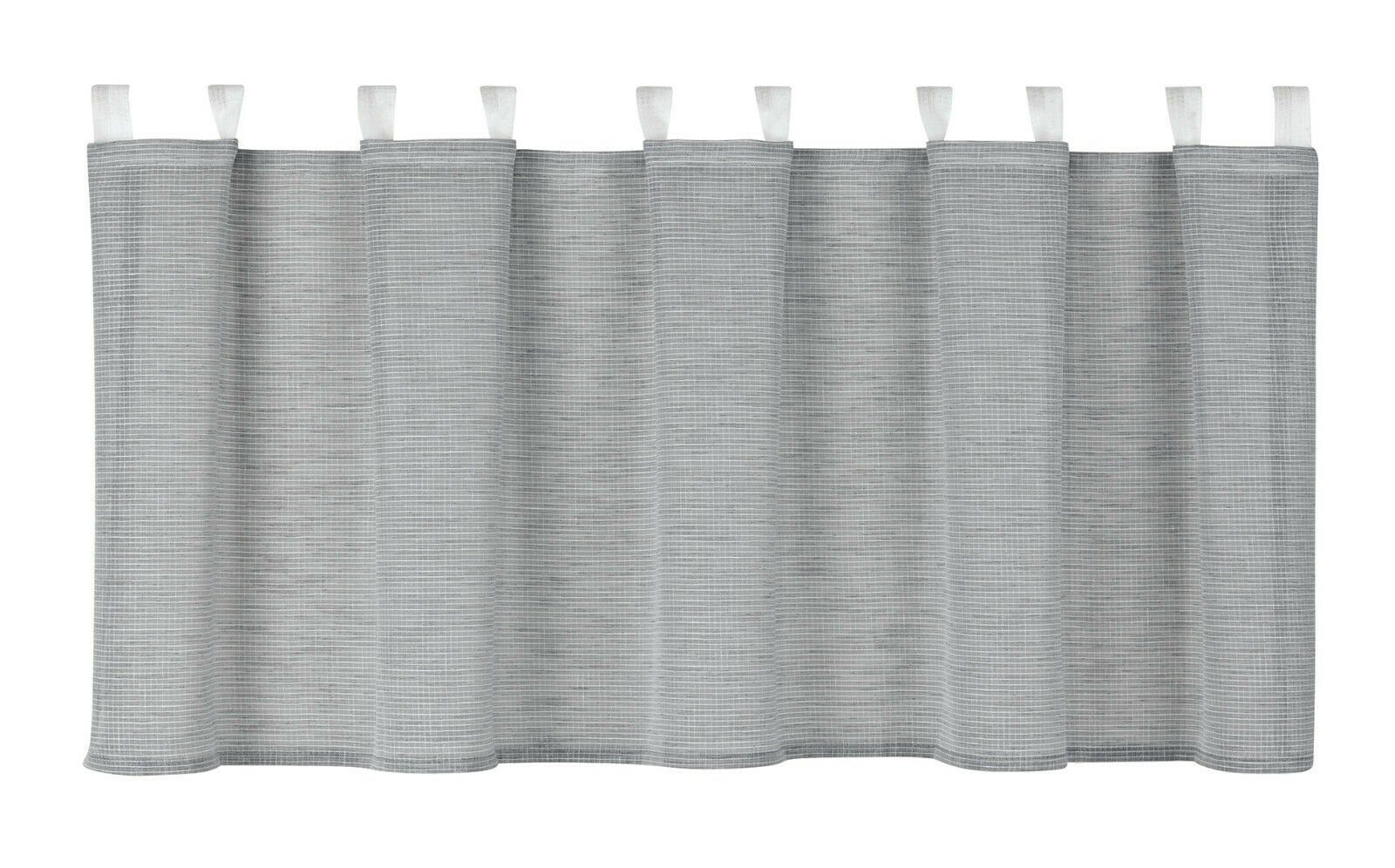 Die Scheibengardine besticht durch ihr schlichtes und modernes Design. Die schöne Farbkombination des Panneaux wirkt edel und mit den angenähten weißen Schlaufen setzen sie einen besonderen Akzent an ihrem Fenster. Die Grundware der Gardine ist leicht sturkturiert und mit kleinen Karos versehen. Der Stoff ist halbtransparent und lässt viele Licht rein, ist aber auch ein guter Sichtschutz. Die Gardine hat 10 Schlaufen und ist hochwertig verarbeitet. Geeignet für handelsübliche Scheibengardinen-/ Vitragenstangen und Gardinenstangen bis zu einem Durchmesser von 12 mm.