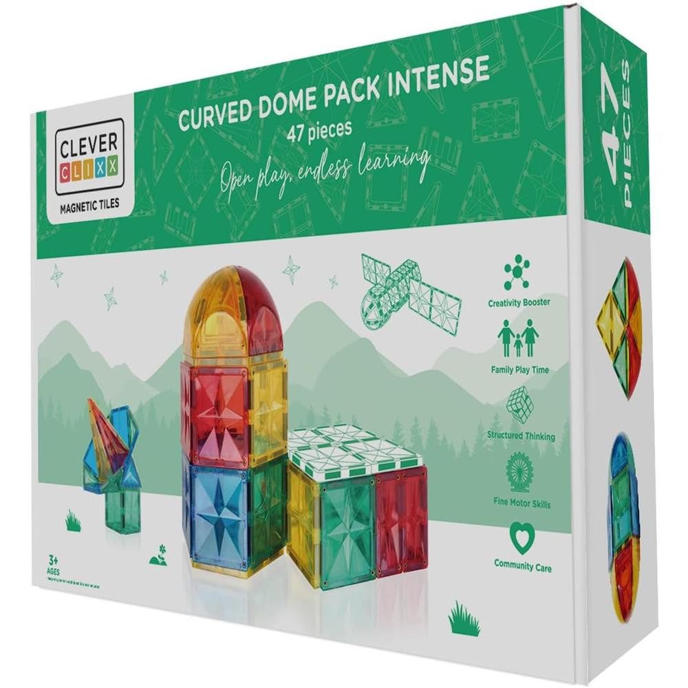 Das Set macht großen Spaß, ist aber auch ein Lernspielzeug, weil es die Entwicklung des räumlichen Vorstellungsvermögens und der Problemlösefähigkeit unterstützt. Ganz gleich, ob es um den Bau von Kuppeln, Bögen oder anderen besonderen Konstruktionen geht, dieses Set ist die perfekte Ergänzung zu jeder Bau-Kollektion. Kombinieren Sie die Bausteine mit anderen Cleverclixx-Bausätzen. Mit diesem Kuppel-Bausatz wird jedes Konstruktionsspiel zu einem Abenteuer mit jeder Menge Kreativität, Innovationen und Spielspaß!