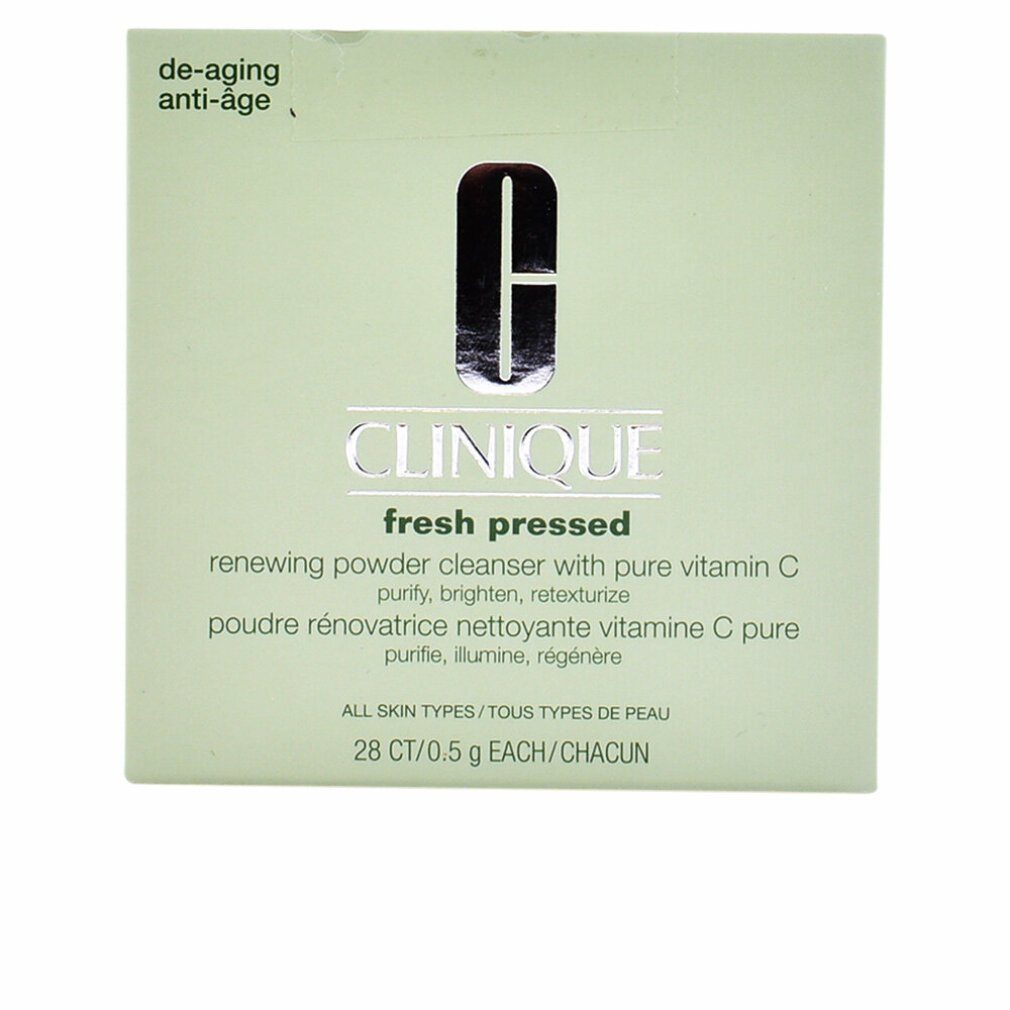 Reinigt und erfrischt sanft den Teint Fresh Pressed Renewing Powder Cleanser sorgt für gründliche Reinigung und Erfrischung. Das ultrafeine Puder wird durch Wasser aktiviert und befreit die Haut von abgestorbenen Hautschüppchen, ohne ihr lebenswichtige Feuchtigkeit zu entziehen. Sanft genug für die morgendliche Anwendung, ist diese Formel bereit für Clinique Fresh Pressed-Haut? Daily Booster enthält reines Vitamin C. Nach der Anwendung sieht der Teint feiner und strahlender aus, die Haut fühlt sich sauber und erfrischt an. Inhalt: 28 Packungen à 0,5 g Clinique Reinigungskonzept: Einfach. Natürlich. effizient. Entwickelt für beste Ergebnisse Keine Hautirritationen. Всеrgietest. 100 % parfümfrei.