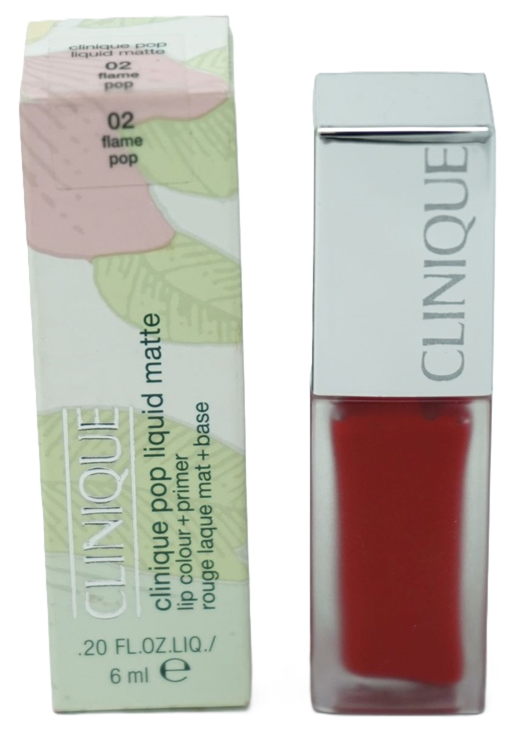 Clinique Pop Liquid Matte in der Nuance 02 Flame Pop ist ein feuriges Rot mit mattem Finish Das hochpigmentierte und langanhaltende Farbergebnis sorgt für einen dramatischen und auffälligen Look Perfekt für Frauen die intensive Farben lieben
