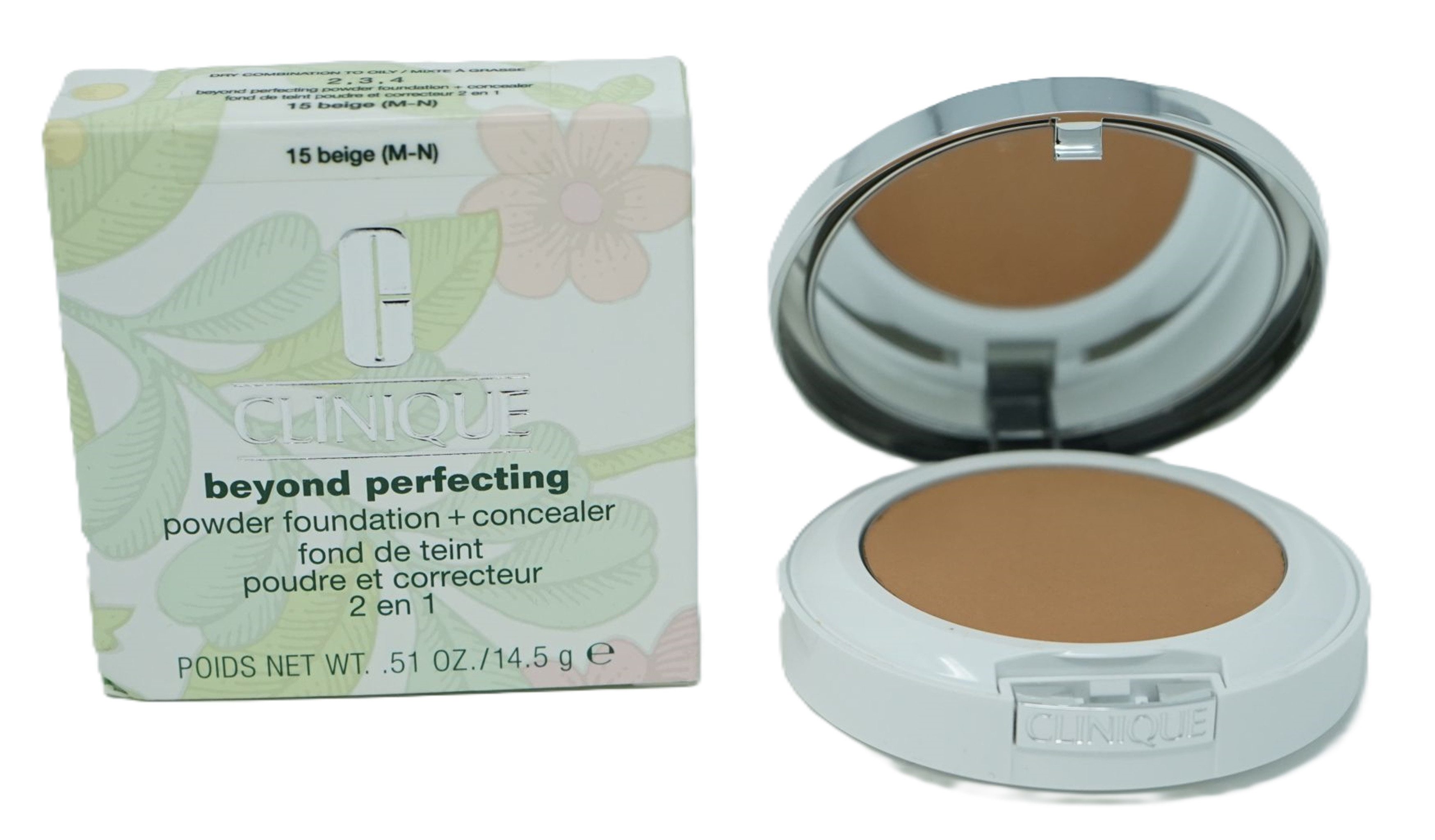 Clinique Beyond Perfecting Powder Foundation + Concealer in der Farbe 15 Beige (M-N) sorgt für eine perfekte Abdeckung mit einem langanhaltenden, matten Finish Die Pudertextur ist leicht und atmungsaktiv für ein angenehmes Hautgefühl
