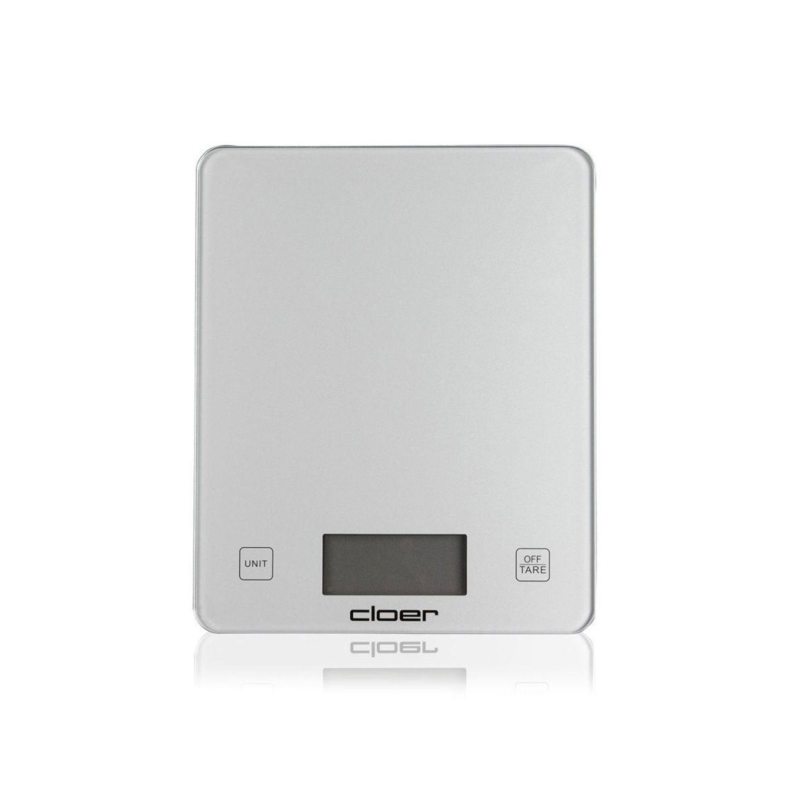Mit der digitalen Küchenwaage lassen sich Lebensmittel bis maximal 10 kg abwiegen. Die Waage kann in den Maßeinheiten g, ml, lb:oz und oz eingestellt werden und startet mit der zuletzt gewählten Einheit neu. Mit nur zwei Tasten ist die Küchenwaage Cloer 6871 einfach zu bedienen und mit der Zuwiegefunktion TARE lassen sich einfach mehrere Zutaten hintereinander abwiegen. Dank des LCD-Displays mit schwarzem Ziffernblatt ist die Gewichtsanzeige leicht zu erkennen. Auf der glatten und hygienischen Glasoberfläche lassen sich Lebensmittelreste einfach abwischen. Mit dem flachen Design lässt sich die Küchenwaage platzsparend in der Schublade verstauen.