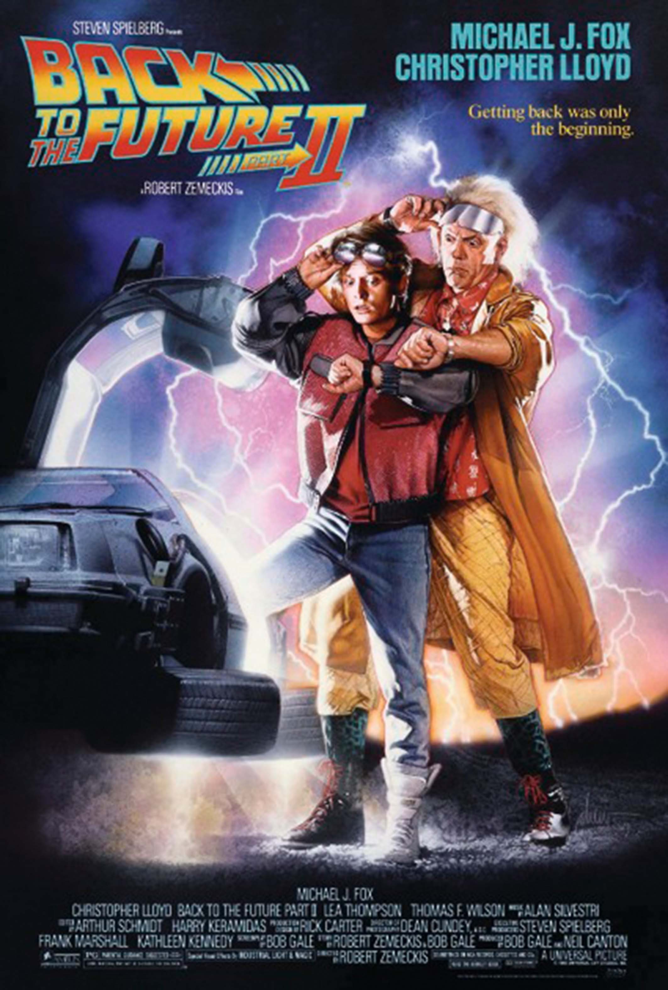 Назад in die Zukunft (Engl. Back to the Future II) mit Michael J. Fox ist wohl einer der kultigsten und beliebtesten Filme aller Zeiten. Das Poster zeigt Marty McFly zusammen mit dem Doc Dr. Emmet Brown vor dem sagenhaften DeLorean. Bereits im ersten Teil von Назад in die Zukunft erlebten Marty und der Doc sagenhafte Abenteuer und Zeitreisen mit dem DeLorean. In Back to the Future II wird das Schicksal der McFlys erneut aufs Spiel gesetzt.