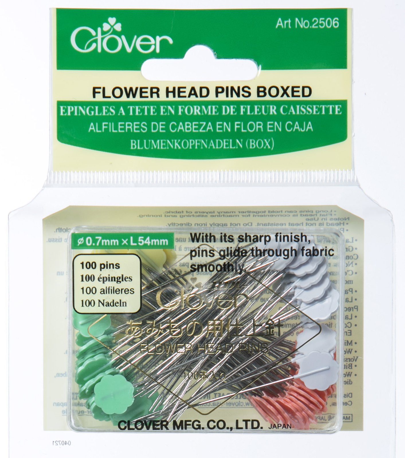 Der flache Stecknadelkopf erleichtert das Nähen mit der Nähmaschine. Die Blümchenköpfe sind nicht hitzebeständig - nicht bügeln!