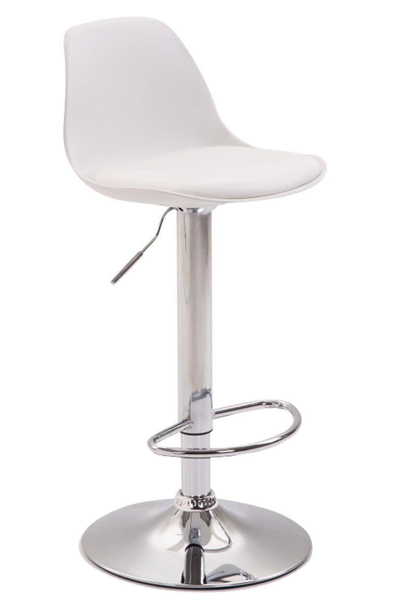 Dieser Barhocker sieht durch seinen Materialmix aus Kunststoff, Kunstleder und Metallgestell einfach nur stylisch aus. Die Sitzschale ist aus stabilem Kunststoff hergestellt. Dank der angenehmen und komfortablen Polsterung mit Kunstlederbezug ist ein bequemes Sitzen auch über einen längeren Zeitraum kein Problem. Zudem ist dieser Küchenhocker höhenverstellbar und passt sich somit ideal an jede Körpergröße an. Der Trompetenfuß aus Metall ist mit einer stilvollen Fußstütze versehen, die das Sitzen noch bequemer gestaltet. Das Gestell ist zusätzlich mit einem Bodenschoner versehen, dieser verhindert Kratzer und Beschädigungen des Bodens.