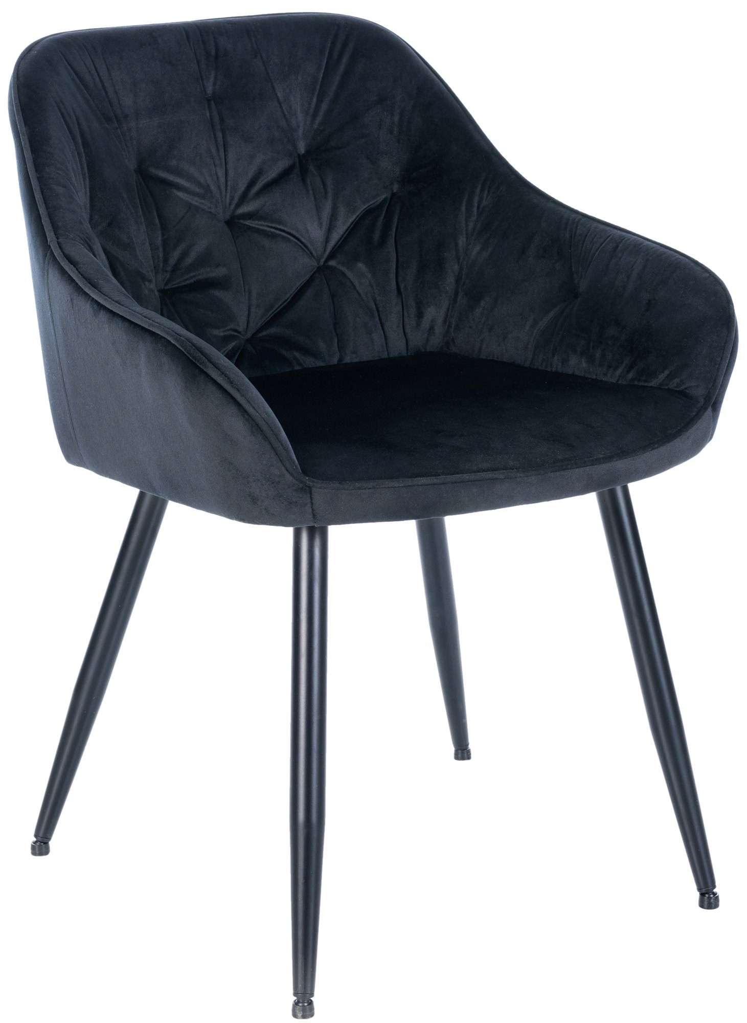 Entscheidend für einen bequemen Sitz ist die angenehme Polsterung über Sitz und Rückenlehne. Dabei sind sowohl Sitzschale als auch Rückenlehne durchgängig mit einem pflegeleichten Samtbezug versehen. Die schicken Ziernähte werten den Polsterstuhl zusätzlich optisch auf.