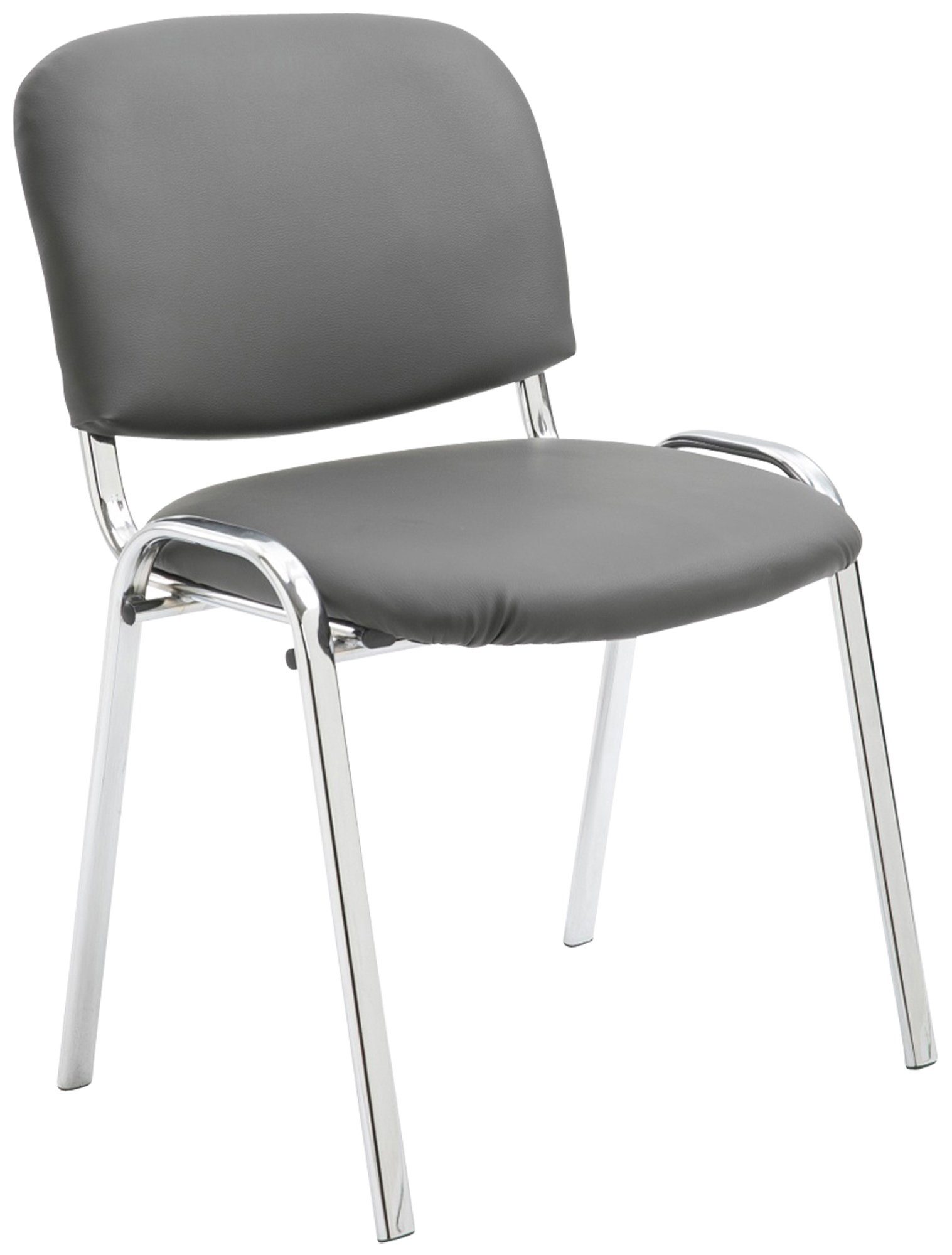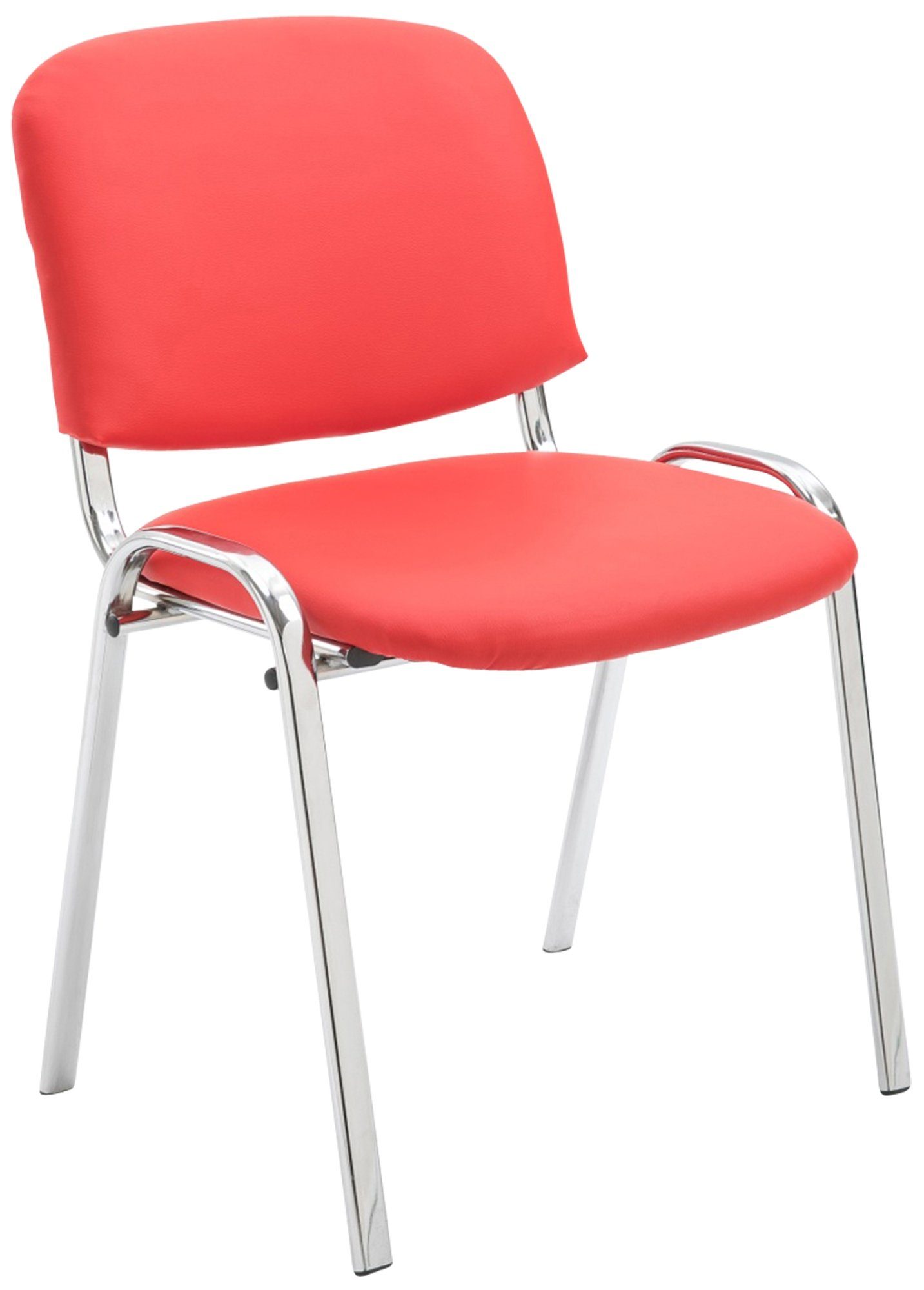 Die gepolsterte Sitzfläche und Rückenlehne, bezogen mit pflegeleichtem Kunstleder, bieten ein langanhaltend angenehmes Sitzgefühl. Dank des Vierfußgestells aus Metall in Chrom-Optik steht der Stuhl standsicher und stabil - bei einer maximalen Belastbarkeit von 120 kg. Bis zu vier Stühle können jeweils gestapelt werden, sodass diese platzsparend und flexibel gelagert und eingesetzt werden können. Bodenschoner aus Kunststoff verhindern, dass empfindliche Böden Schaden nehmen.