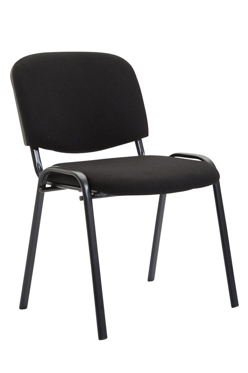 Die gepolsterte Sitzfläche und die komfortable Rückenlehne, bezogen mit pflegeleichtem Stoff, bieten ein lang anhaltend angenehmes Sitzgefühl. Dank des Vierfußgestells aus matt-schwarzem Metall steht der Stuhl standsicher und stabil - bei einer maximalen Belastbarkeit von 120 kg.