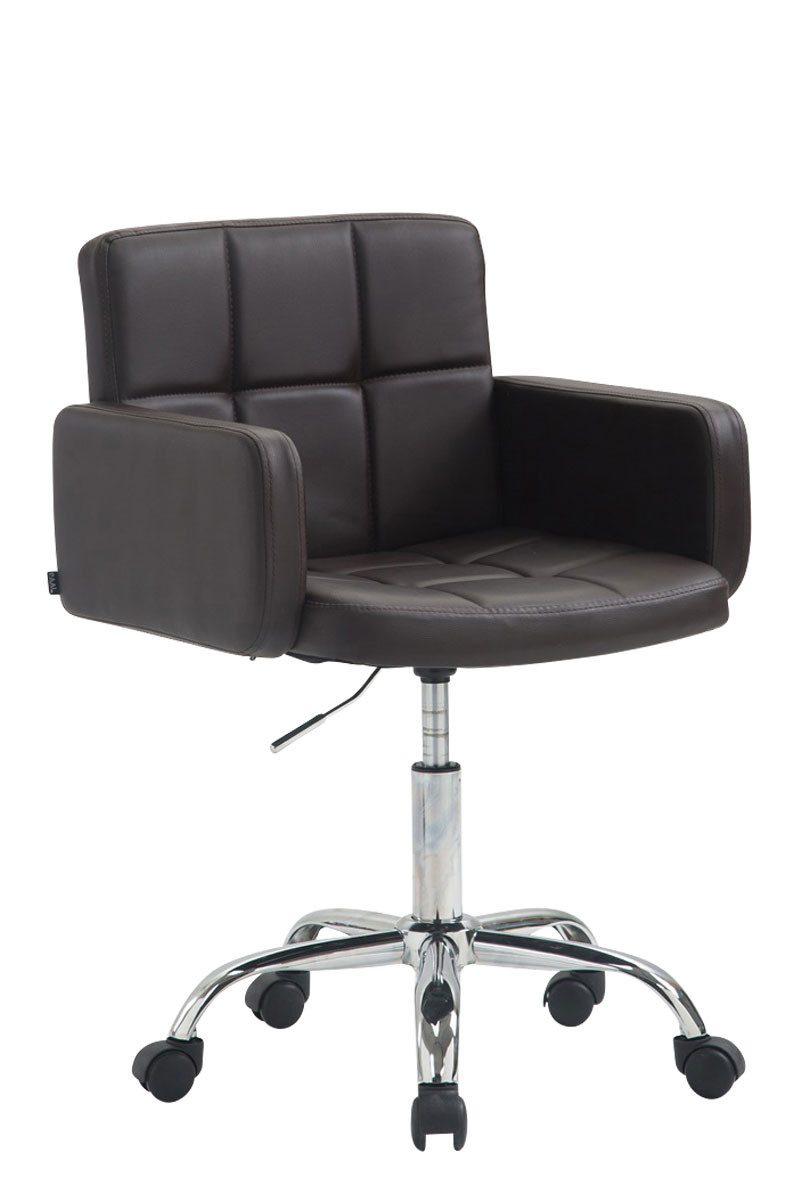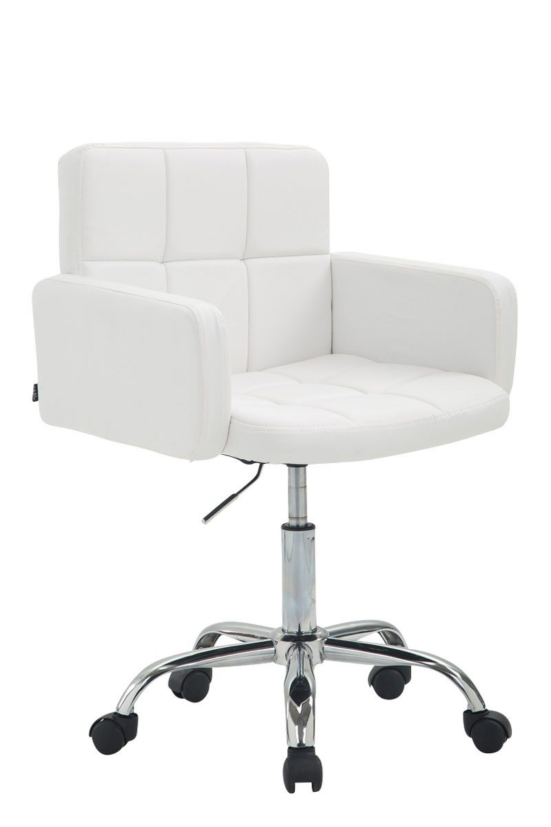 Der Sitz ist mit Kunstleder bezogen, welcher mit besonderer Steppung versehen ist und diesem Drehstuhl seinen exklusiven Look verleiht. Zudem ist der komfortable Drehhocker stufenlos höhenverstellbar und dank der pflegeleichten Materialien ist der Los Angeles schnell und einfach zu reinigen. Standsicher und stabil steht er auf einem Gestell aus Metall in Chromoptik. Versehen mit fünf Leichtlaufrollen kann man leicht und locker über jeden Boden rollen, egal ob Hart- oder Teppichböden.
