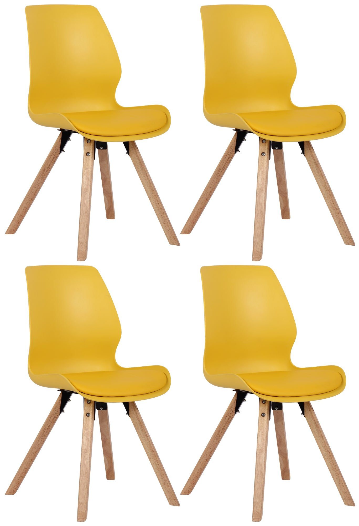 Diese komfortablen Stühle bestechen nicht nur durch hervorragende Sitzeigenschaften, sondern auch durch ihren spannenden Materialmix. Die Sitzschalen sind aus stabilem Kunststoff mit Kunstlederpolster, komplett aus Samt, Kunststoff oder komplett aus Stoff erhältlich. Der Sitz ermöglicht ein bequemes Sitzen auch über einen längeren Zeitraum hinaus. Auf dem 4-Fuß Untergestell aus Holz stehen diese Besucherstühle bei jedem Anlass gut da.