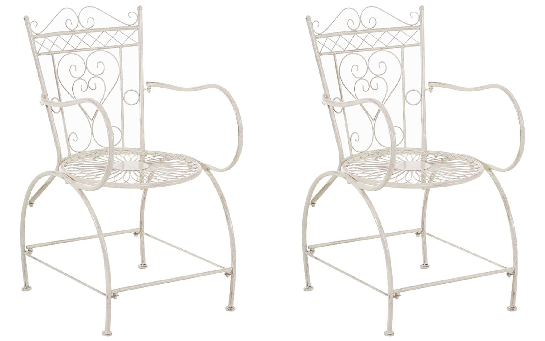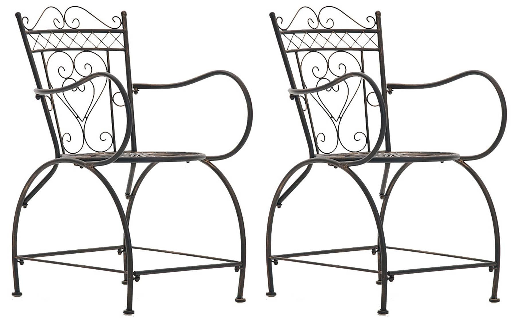 Mit dem 2er Set Stühle Sheela lassen sich idyllische Momente im Freien genießen. Im stilvollen, detailverliebten Design findet es seinen Platz im Garten und auf dem Balkon. Das filigrane Gestell aus Eisen beeindruckt mit liebevollen, handgefertigten Verzierungen. Eine in Handarbeit nachempfundene antike Patina veredelt die Oberflächen der Gartenstühle. In den Farben Antik-Braun, Antik-Weiß, Antik-Creme, Antik-Grün, Bronze und Weiß lässt sich das 2er Set Stühle Sheela wunderbar mit vielen Einrichtungsstilen kombinieren.