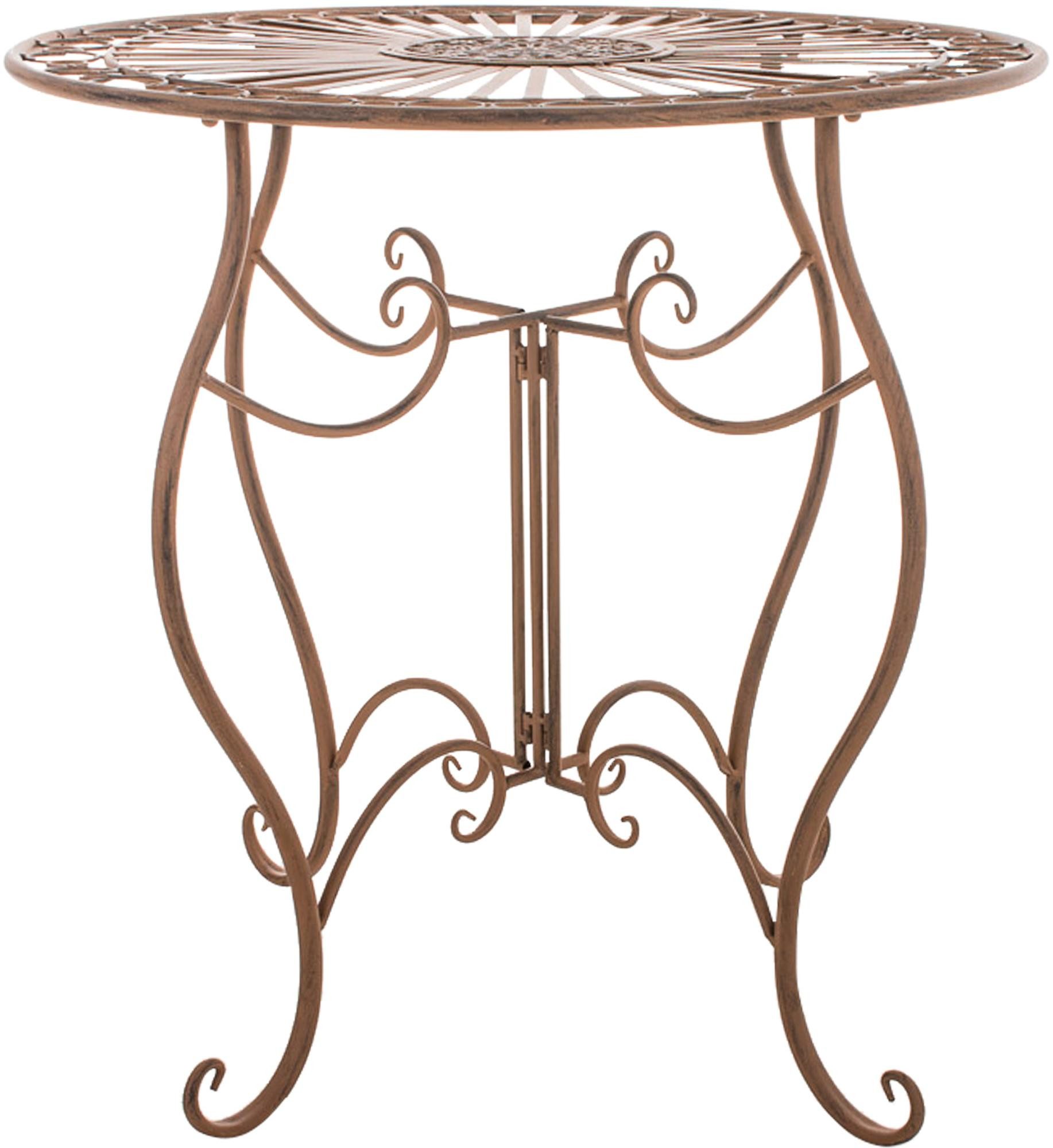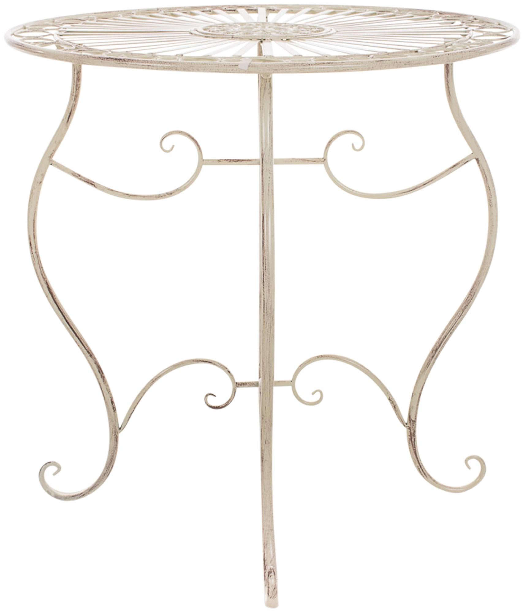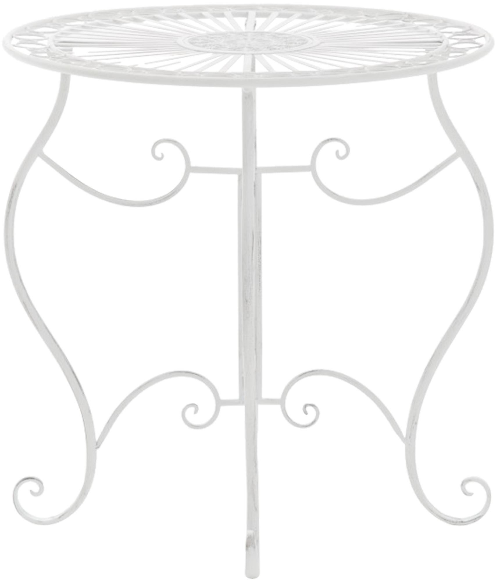 Verleihen Sie Ihrem Garten oder Ihrer Terrasse einen Hauch nostalgischer Eleganz mit dem Tisch Indra. Dieses stilvolle Möbelstück überzeugt durch sein filigranes Design, liebevoll gearbeitete Verzierungen und eine harmonische Patina, die dem Tisch einen besonders edlen Charakter verleiht.