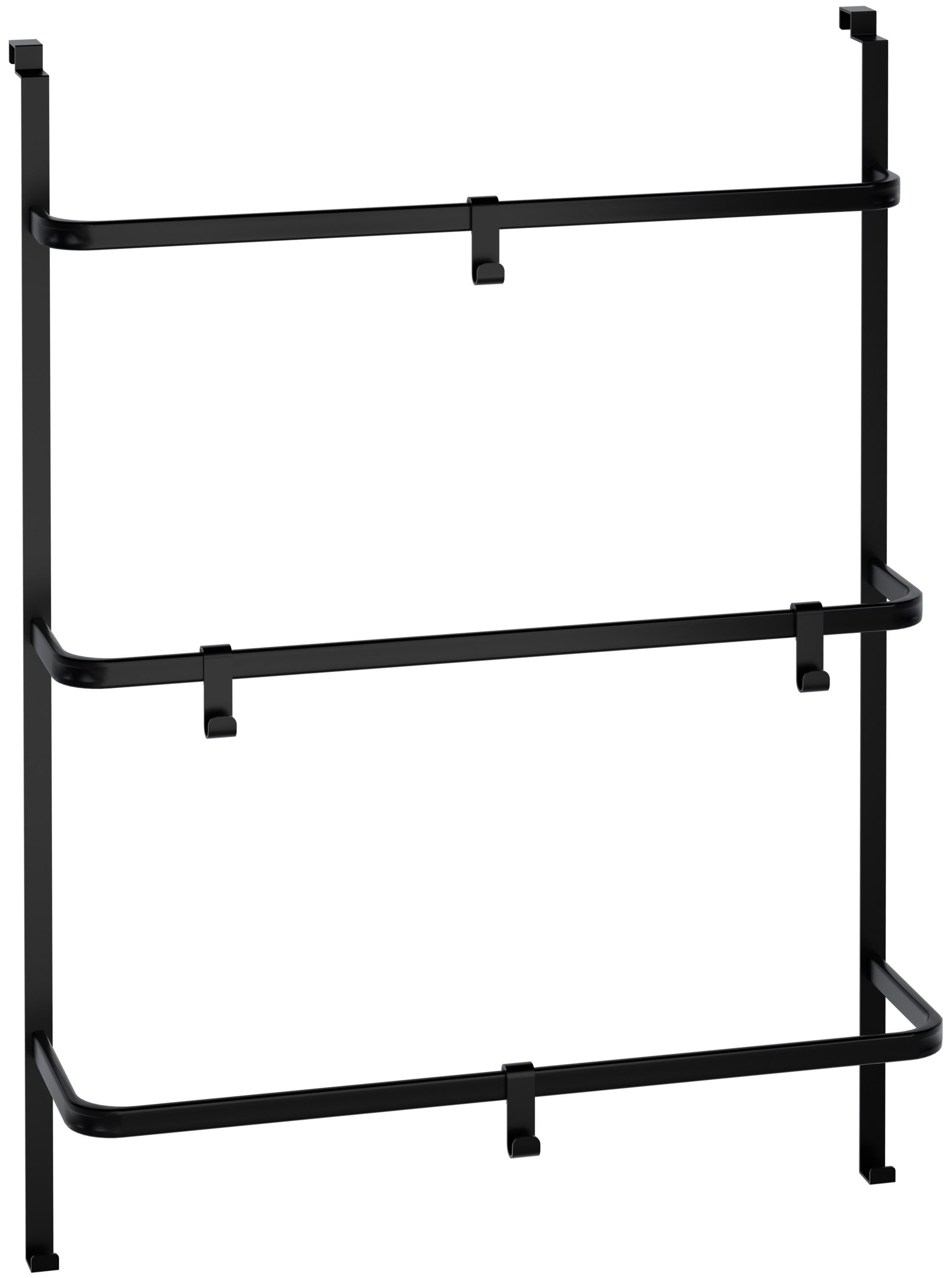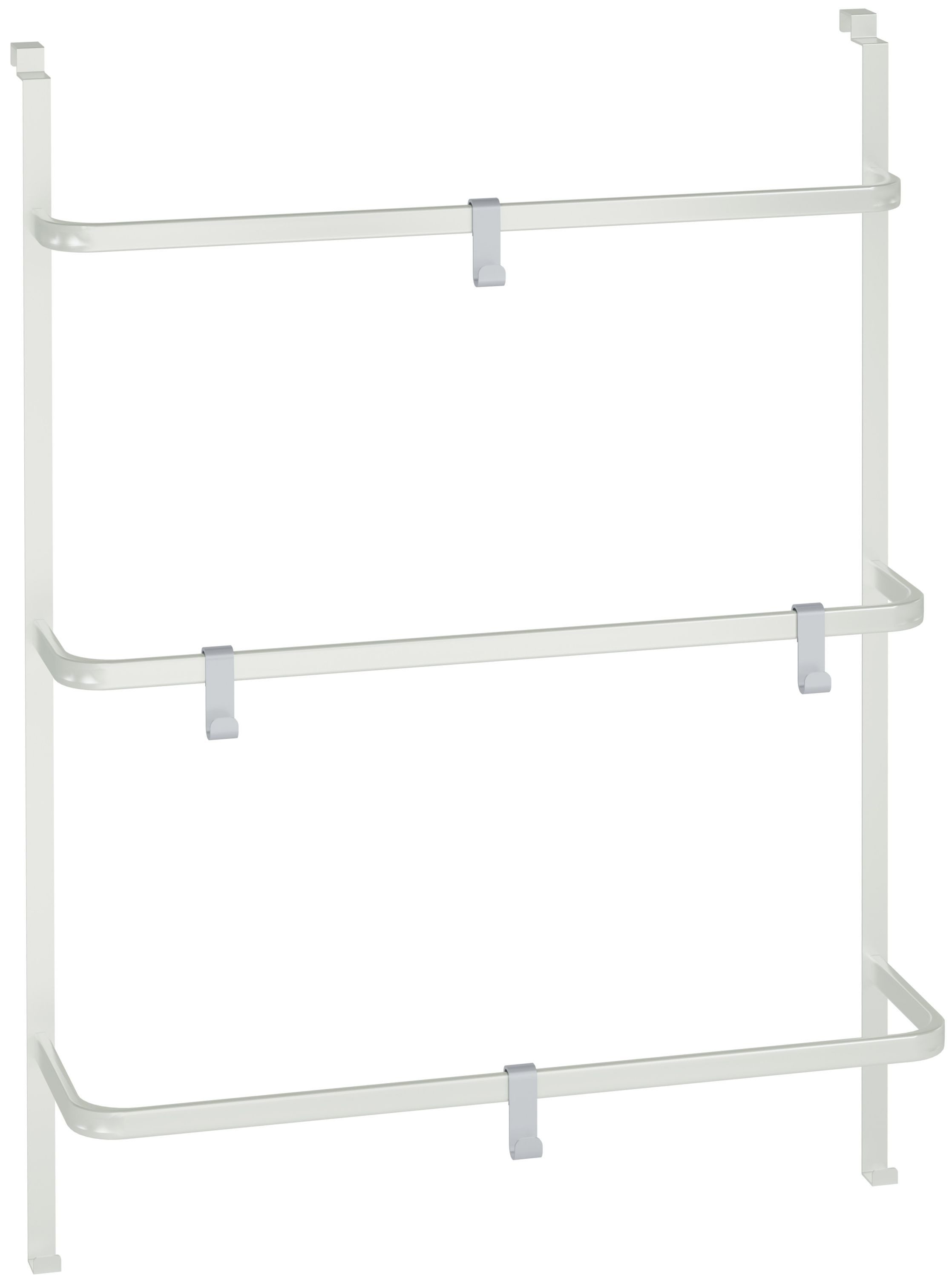 Mit seinen drei stufenweise angeordneten Stangen sorgt der Handtuchhalter für schnelles und effektives Trocknen von Handtüchern und Badetüchern. An vier Haken können außerdem Waschlappen und Co. aufgehängt werden.