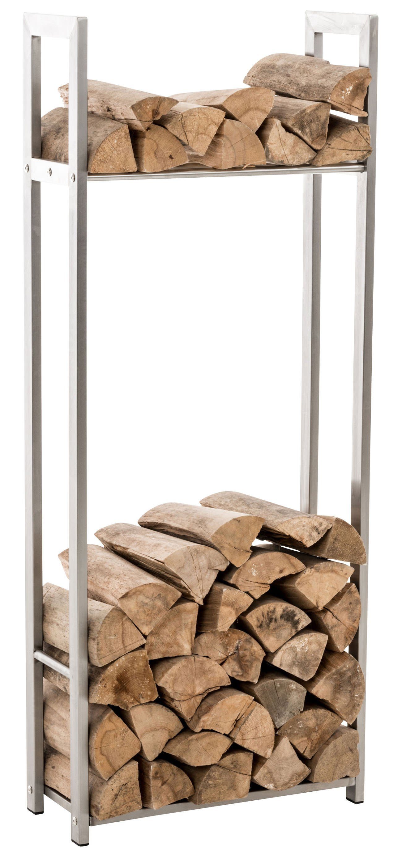 Mit diesem exklusiven Kaminholzständer holen Sie sich ein wahres Schmuckstück ins Haus. Das moderne und zeitlose Design verleiht jedem Wohnraum eine ganz besondere Note. Unter Verwendung von hochwertigen Materialien wurde dieses Produkt handgefertigt und verspricht höchste Qualität und Langlebigkeit. Zudem ist dieser Holzständer ein toller Blickfang - ganz gleich, ob im Wohn- oder Arbeitszimmer, dem Wintergarten oder auch im Kaminzimmer. Praktisch ist das zusätzliche Regalfach für extra Stauraum sowie zwei Haken die individuell befestigt werden können, beispielsweise zum Aufhängen von Kaminbesteck. Die Bodenschoner unter den Füßen, schützen den Boden vor eventuellen Kratzern.