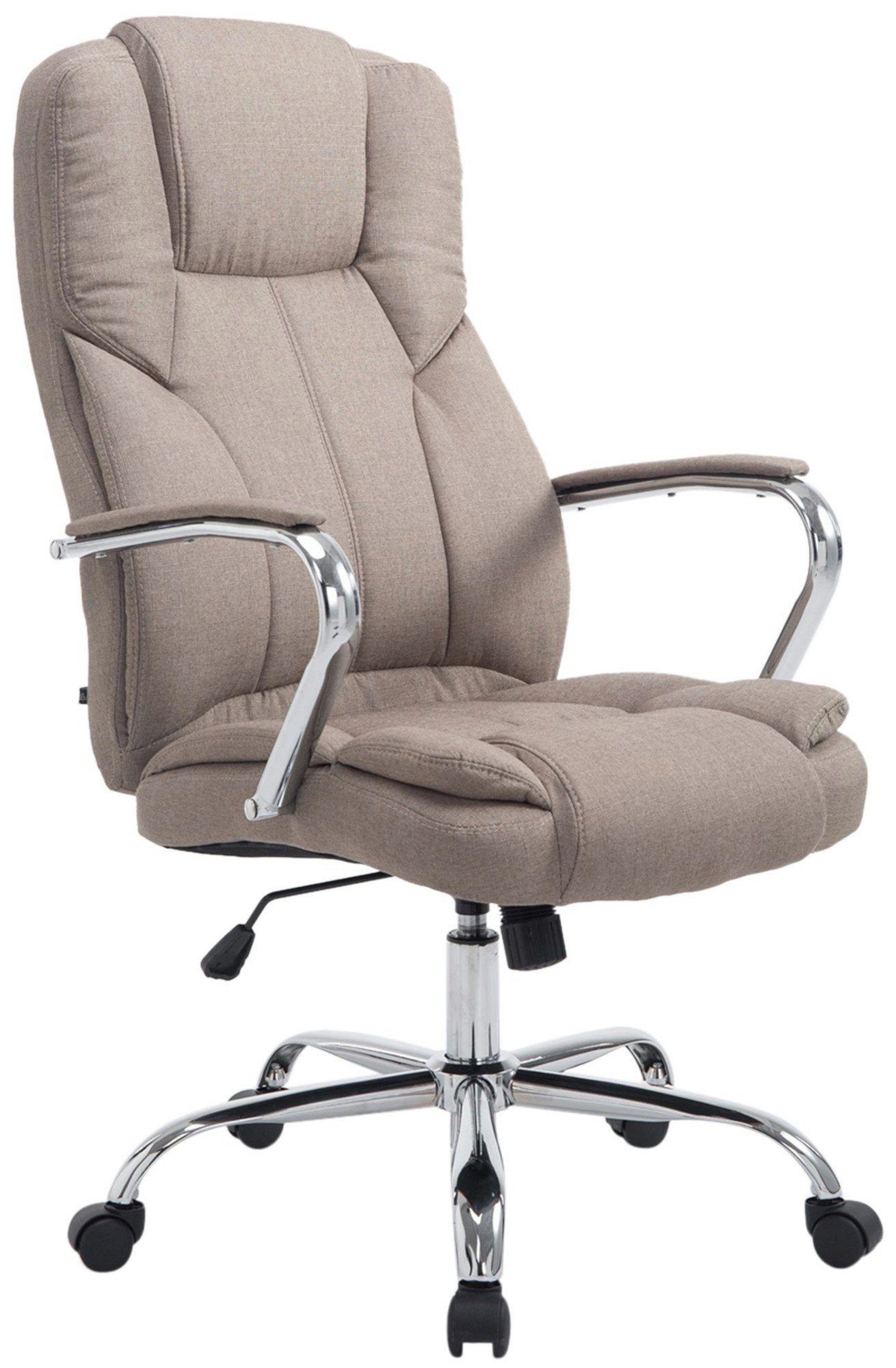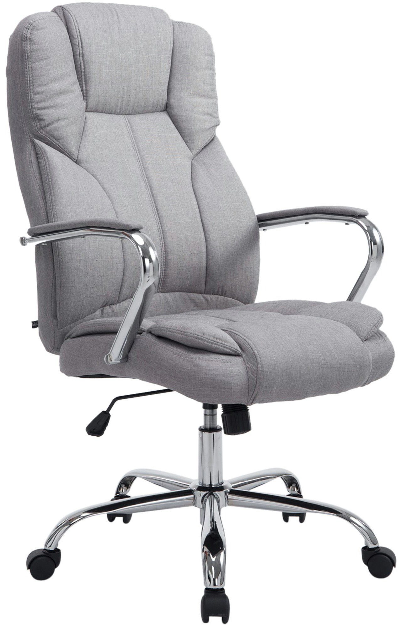 Der Chefsessel Xanthos ist ein exklusiver Bürostuhl mit einer sehr hochwertigen Polsterung und modernen Stoffoptik. Dabei sieht der Stoffbezug nicht nur schön aus, er ist auch besonders robust und pflegeleicht. Ein stabiles Metallgestellt sorgt zusätzlich für einen sicheren Stand. Zudem ist Dank einer verstellbaren Sitzhöhe das ergonomische Sitzen garantiert. Zusätzlich kann die Sitzhöhe mittels eines Hebels unter dem Sitz stufenlos verstellt werden. Ein eingebauter Wippmechanismus sorgt für mehr Bewegungsfreiheit. Der Bürostuhl Xanthos steht fest auf fünf Leichtlaufrollen. Egal ob Hart- oder Teppichböden - Sie werden immer leicht und locker über den Boden rollen können.