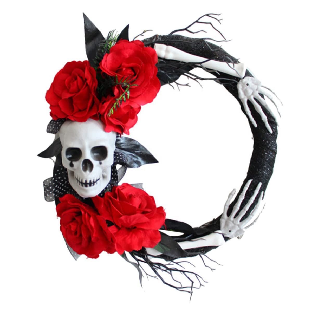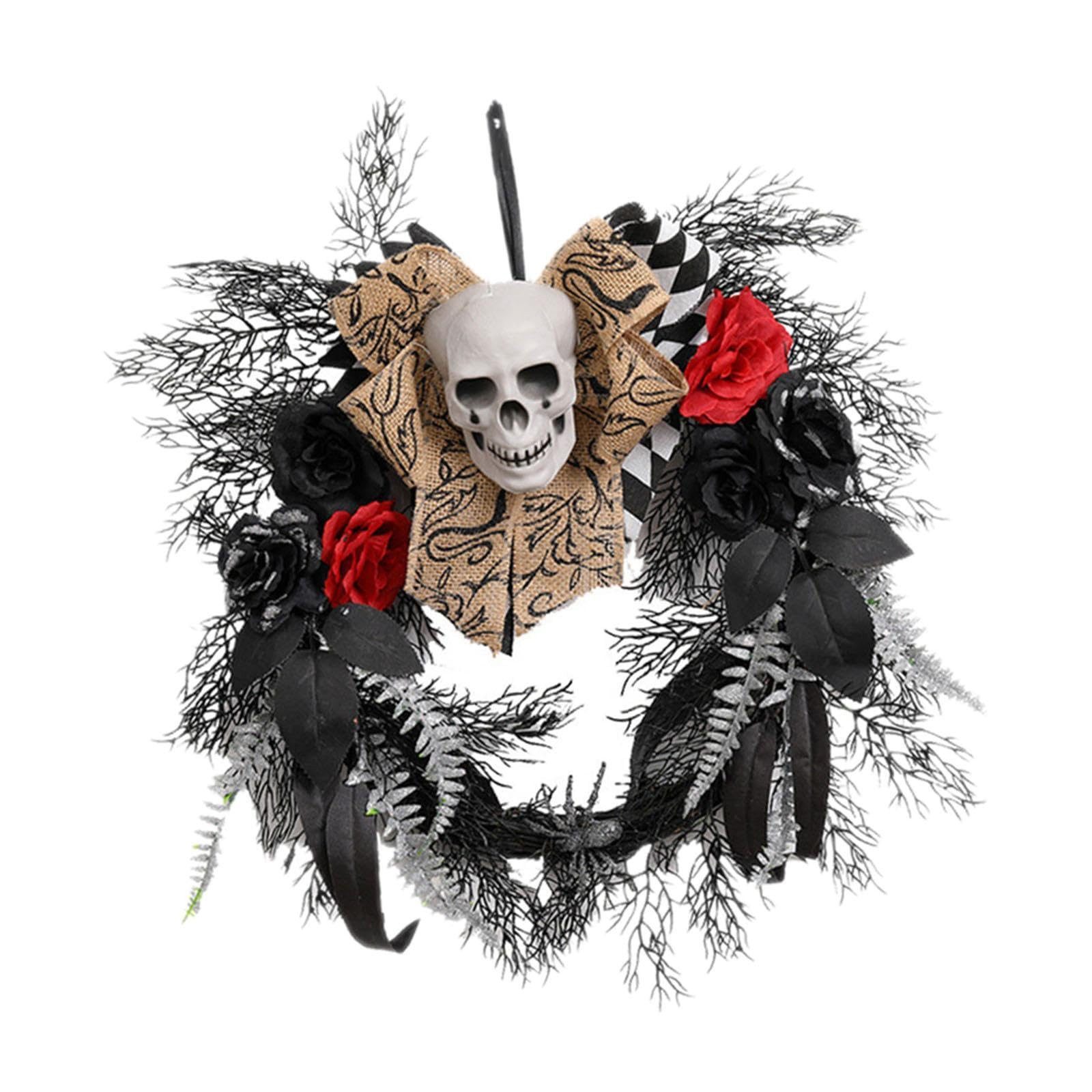 [Halloween-Dekoration] Dieser künstliche Kranz mit Kunstblumen und Totenkopf-Elementen schafft ein einzigartiges und kreatives Design, das ein echter Hingucker ist. Er ist eine tolle Halloween-Kunstdekoration.