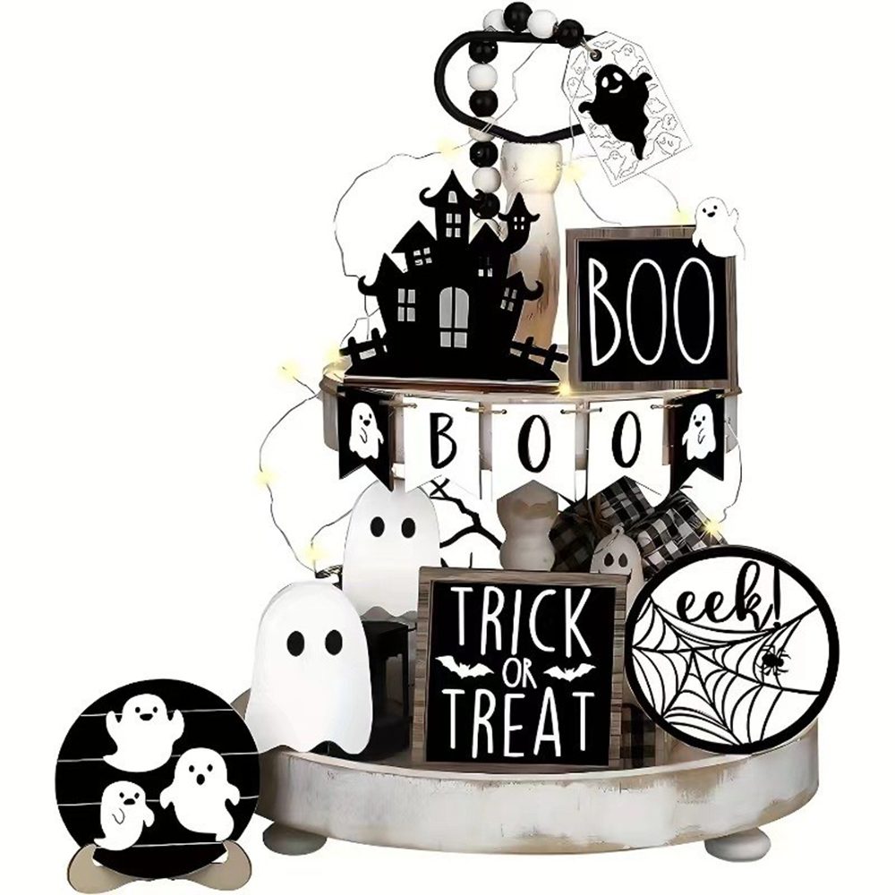 15-teiliges Set mit Halloween-Motiven – Sie erhalten 15 wunderschön gestaltete, handgefertigte Halloween-Dekorationen für Schicht-Tabletts, ideal für die Dekoration Ihrer Tischplatte, Party-Ständer und mehr. Jede Dekoration ist niedlich und perfekt verarbeitet.