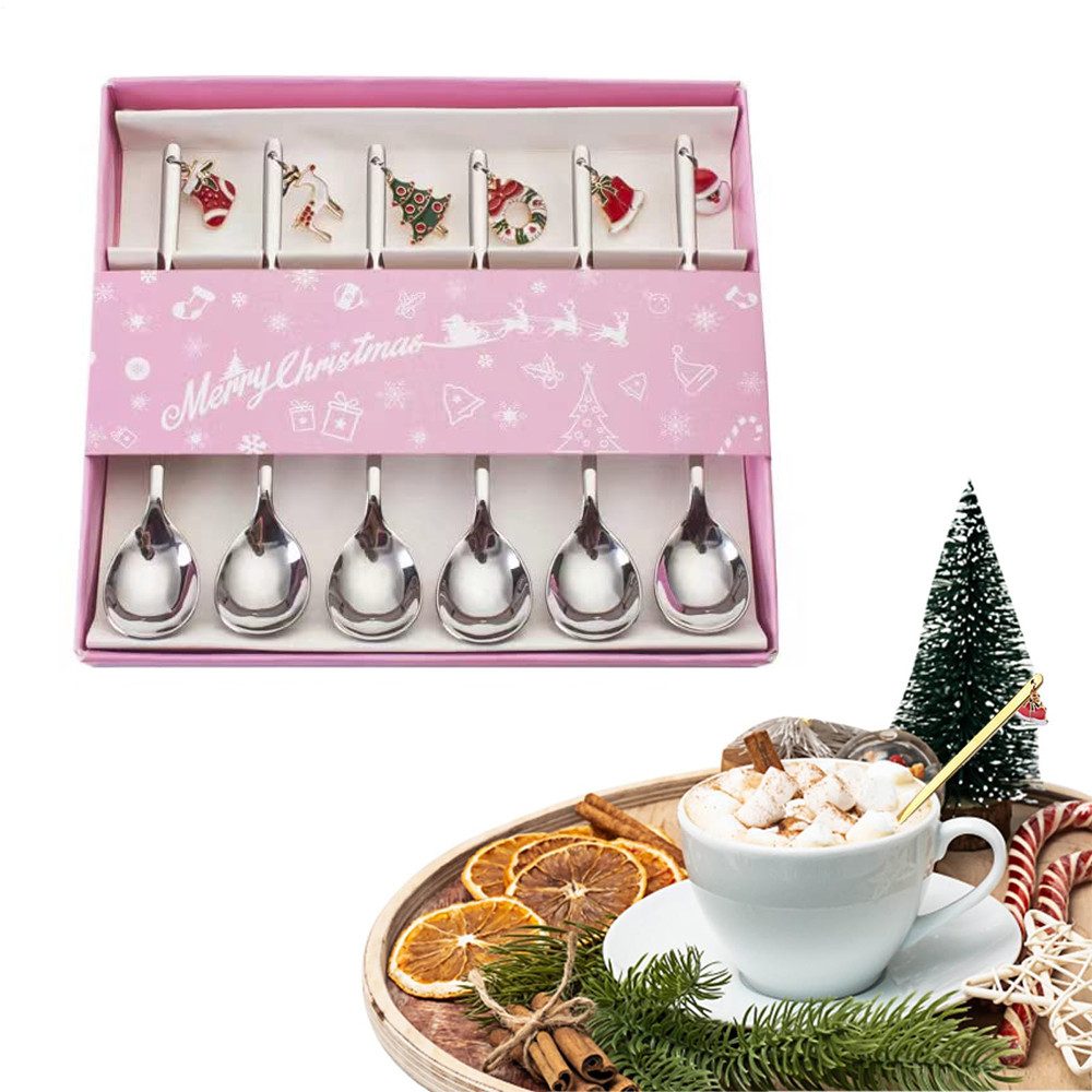 Weihnachtliche Löffel – Jeder Löffel ist mit einem weihnachtlichen Anhänger versehen, der aus Stiefeln, Rentieren, Weihnachtsbäumen, Girlanden und Glocken besteht. Traditioneller Weihnachtsstil, perfekt für Weihnachtsfeiern und Familienzusammenkünfte, um eine festliche Atmosphäre zu schaffen.
