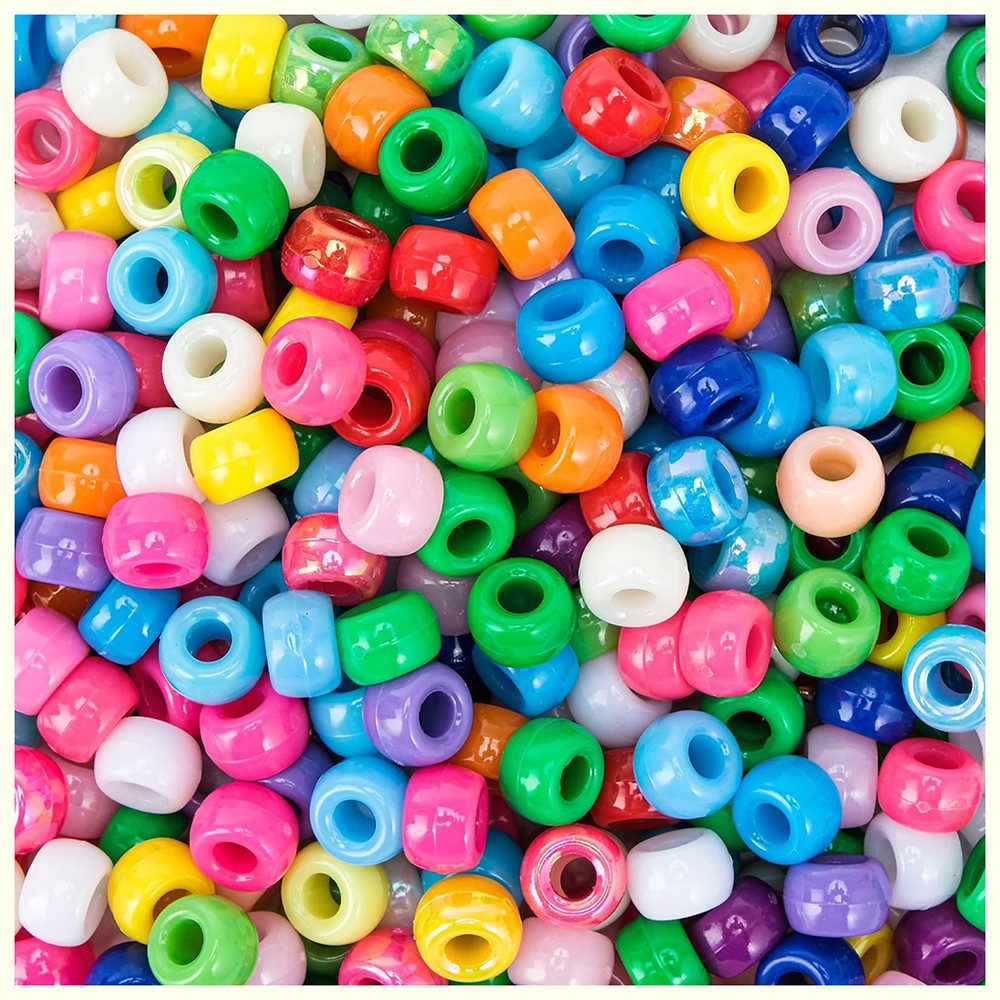 Ca. 1800 bunte Perlen: Diese runden Perlen (6 x 9 mm) bestehen aus leichtem und robustem Kunststoff und haben ein großes Loch (4 mm Durchmesser), das perfekt für das Auffädeln von Perlen geeignet ist.