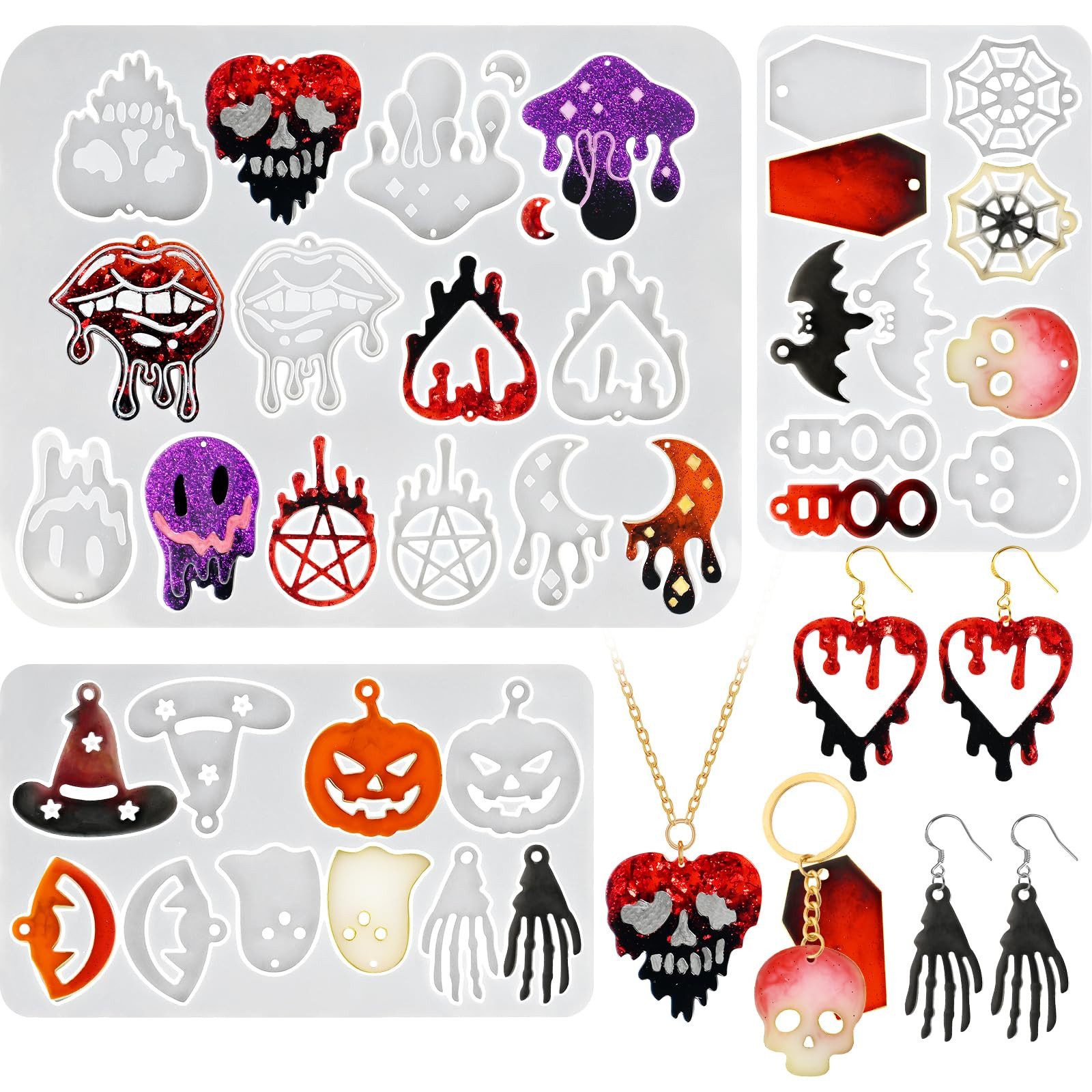 Erstellen Sie einzigartige Halloween-Harzohrringe, gruselige Anhänger, Schlüsselanhänger und Ornamente mit diesen vielseitigen Silikonformen für Harzguss, die perfekt für alle Fähigkeitsstufen geeignet sind. Diese Halloween-Schmuckformen eignen sich perfekt zum Herstellen von Partyzubehör, Heimdekorationen und Halloween-Harzornamenten, um Ihr Geisterhaus-Design zu vervollständigen. Erstellen Sie erschreckend schöne Halloween-Harzanhänger, Ohrringe und Schlüsselanhänger mit professionellen Ergebnissen jedes Mal. Ob Sie Halloween-Partygäste beschenken oder ein gruseliges Schmuckunternehmen starten, diese Formen helfen dabei, unvergessliche Halloween-Harz-Bastelarbeiten zu kreieren, die perfekte Geschenke für Ehefrauen, Freundinnen und Horror-Fans sind.