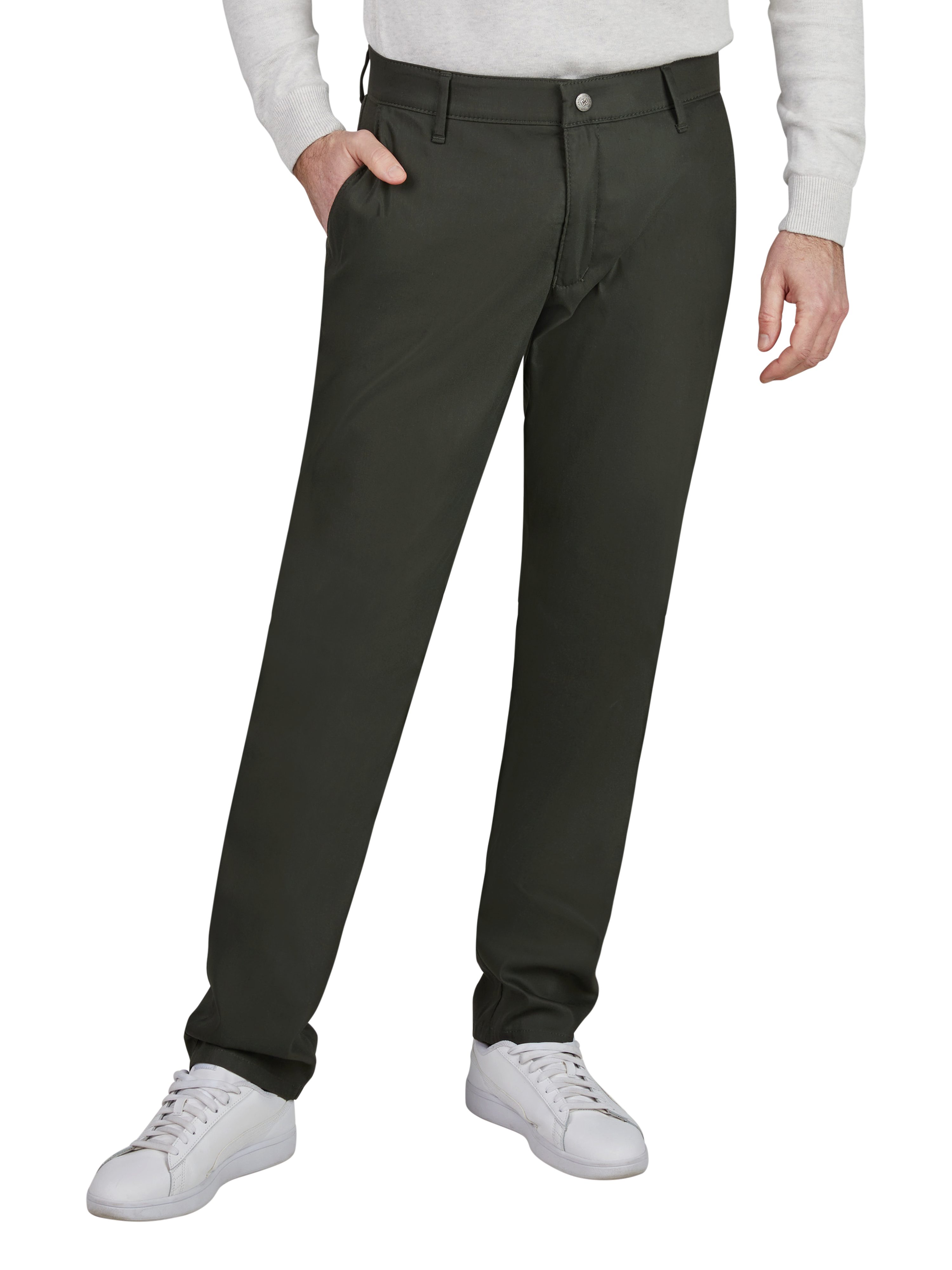 Leibhöhe | Tapered Fit bezeichnet eine Passform mit mittlerer Leibhöhe, mehr Weite an Gesäß und Oberschenkel sowie schmalem Beinverlauf. |