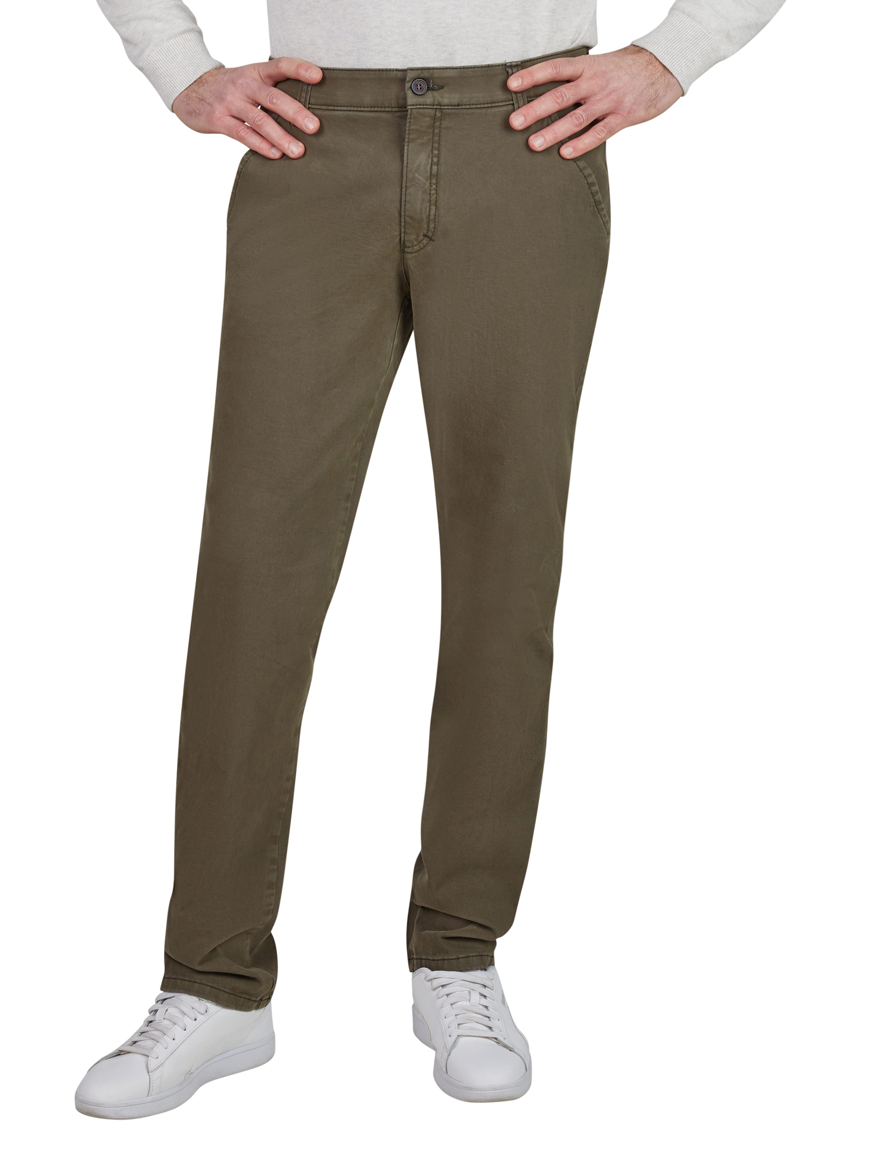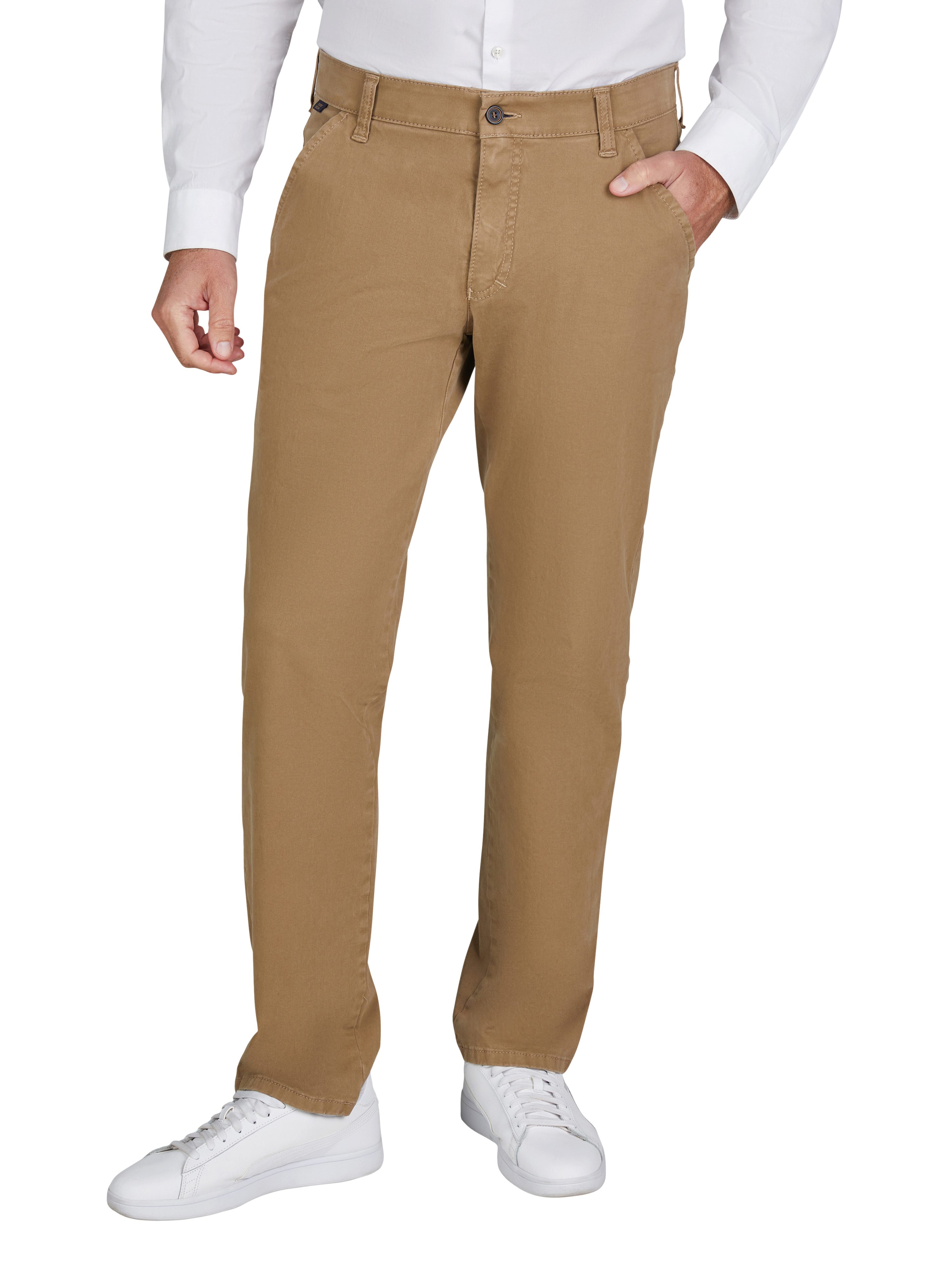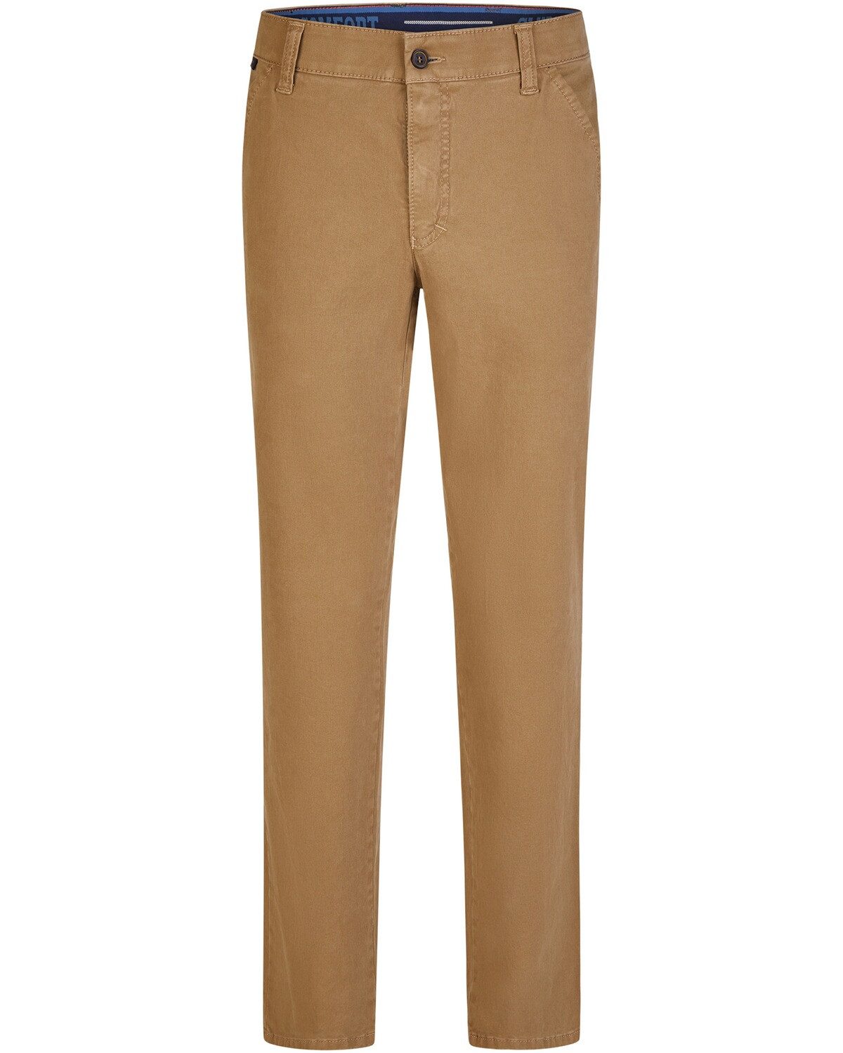 Die Herren Slim Fit Chino Garvey von Club of Comfort vereint modernen Stil mit außergewöhnlichem Komfort. Hergestellt aus hochwertiger Bi-Stretch-Baumwolle, bietet diese Chino eine hervorragende Elastizität, die maximale Bewegungsfreiheit ermöglicht, ohne dabei an Form zu verlieren. Die schmal geschnittene Passform sorgt für einen zeitgemäßen Look, der sich mühelos in jede Freizeit- und Arbeitsgarderobe integrieren lässt. Praktische Details wie französische Seitentaschen, eine Münztasche sowie Leistengesäßtaschen machen die Chino nicht nur funktional, sondern auch besonders vielseitig. Der Comfort-Bund, der sich um mindestens 4 cm dehnen lässt, sorgt für einen perfekten Sitz und zusätzlichen Komfort, während der doppelte Hemd- und Shirt-Stopper dafür sorgt, dass alles an Ort und Stelle bleibt. Pflegeleicht und waschbar, ist die Garvey Chino ideal für den aktiven Lebensstil. Ihre besondere Formstabilität garantiert, dass sie auch nach mehreren Wäschen ihre Passform und ihren Look behält. Diese Chino ist die ideale Wahl für modebewusste Herren, die Wert auf Qualität und Bequemlichkeit legen. Oberstoff: 95% Baumwolle, 5% Elasthan