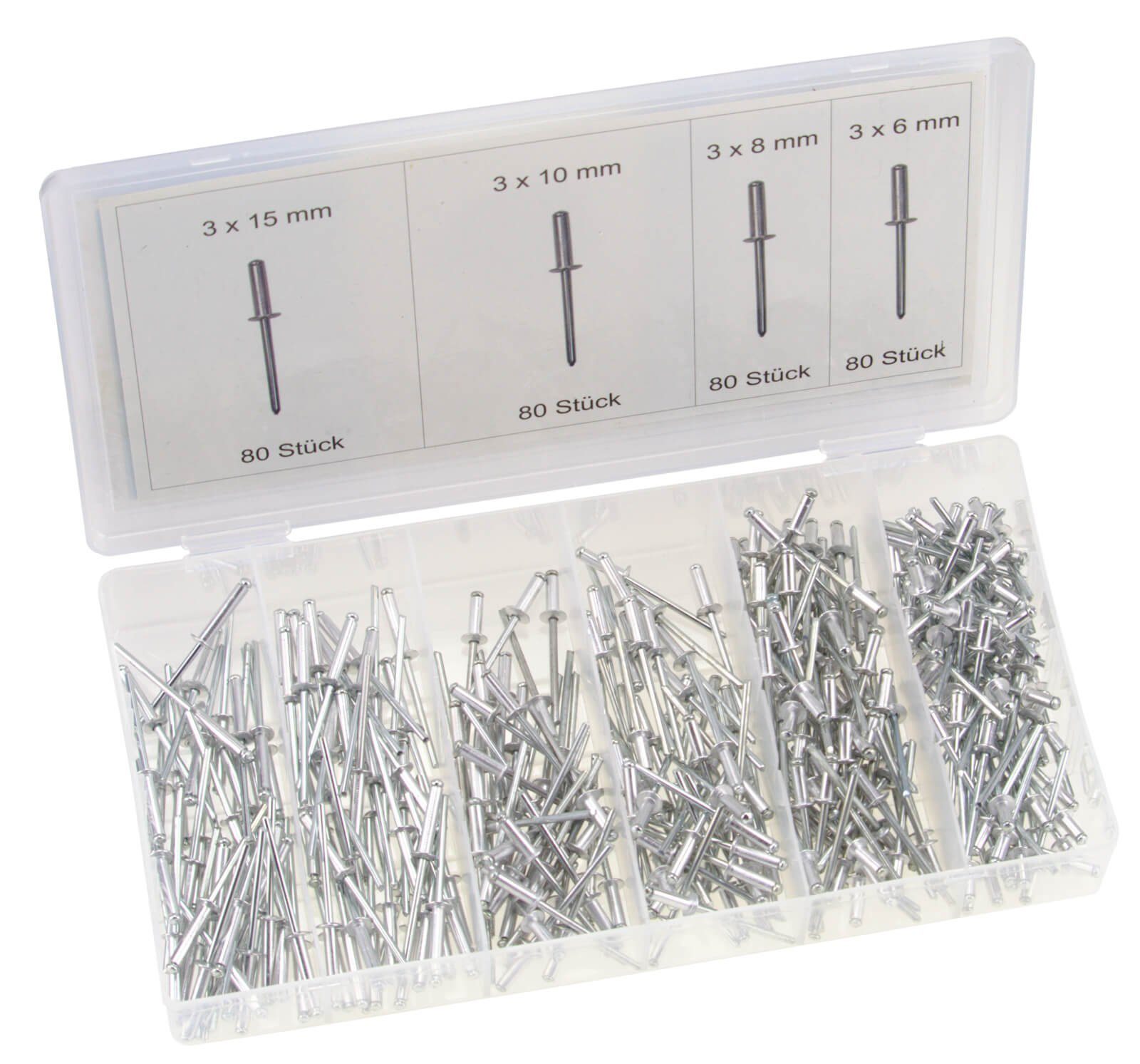 Lieferumfang | 320 teiliges Blindnieten Меню |