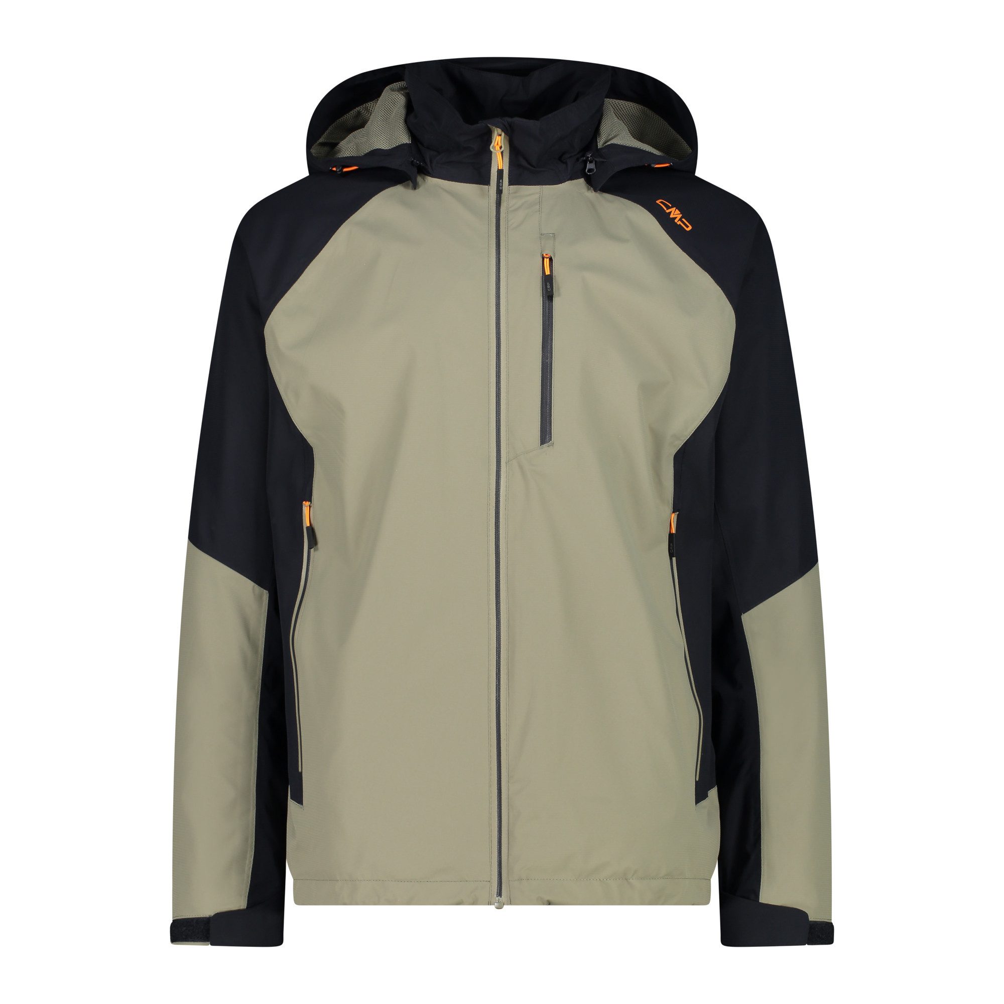 CMP Herren Jacke MAN JACKET ZIP HOOD. Wasserdichte Ripstop-Jacke mit Kapuze. Ein geeignetes Kleidungsstück für mehrschichtige Kleidung bei Outdoor-Aktivitäten. Die Clima Protect-Membran zwischen den Geweben und die vollständig versiegelten Nähte garantieren Wasserdichtigkeit und Atmungsaktivität. Das Kleidungsstück wird durch einen Frontreißverschluss mit winddichter und ausfransungssicherer Patte, einen hohen Kragen und eine ergonomische Kapuze, einen verstellbaren Saum und Manschetten sowie zwei Seitentaschen mit Reißverschluss vervollständigt. Material: 100% Polyester