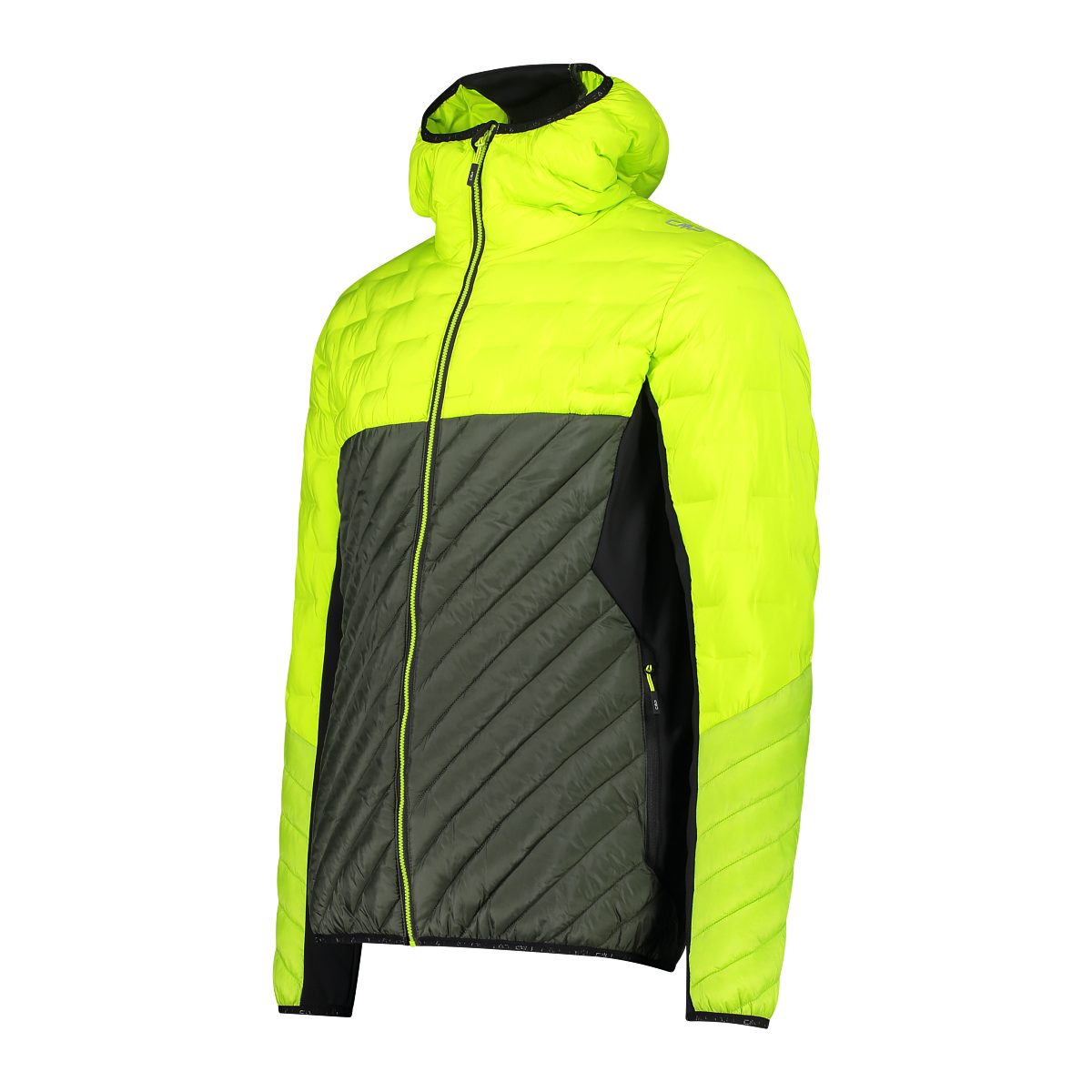 Ein Kleidungsstück, zahlreiche Abenteuer. Hybridjacke für den Einsatz bei Wintersportaktivitäten wie Trekking, Wandern, Schnellwandern und Bergsteigen. Je nach Intensität oder Außentemperatur kann die Jacke als mittlere Schicht oder als äußere Schicht verwendet werden. Das leichte Ripstop- und Nylongewebe (40 g/qm) wird mit einer Primaloft Recycled Black Thermoplume-Wattierung kombiniert, die zu 100 Prozent aus recyceltem Material besteht und auf der Vorder- und Rückseite sowie am Unterarm angebracht ist. Das Kleidungsstück schützt nicht nur vor Kälte, sondern dank der wasserabweisenden Behandlung auch vor Wasser und Wind. Die ergonomische Passform sorgt für einen hohen Tragekomfort, und Details wie die Innentasche mit Reißverschluss und die integrierte Kapuze am Kragen machen sie zu einem Allrounder für die ganze Saison. Der Color-Block-Effekt sowie der Mix aus diagonalen und horizontalen Streifen machen die Jacke modern und passend für jede Gelegenheit.